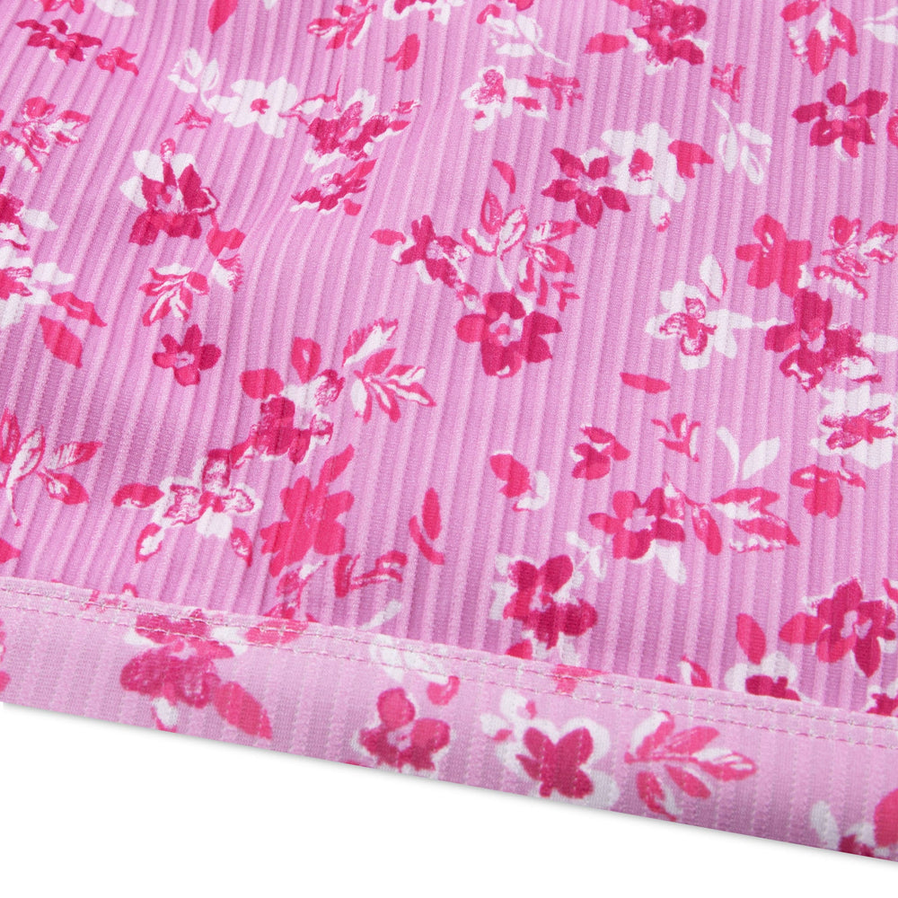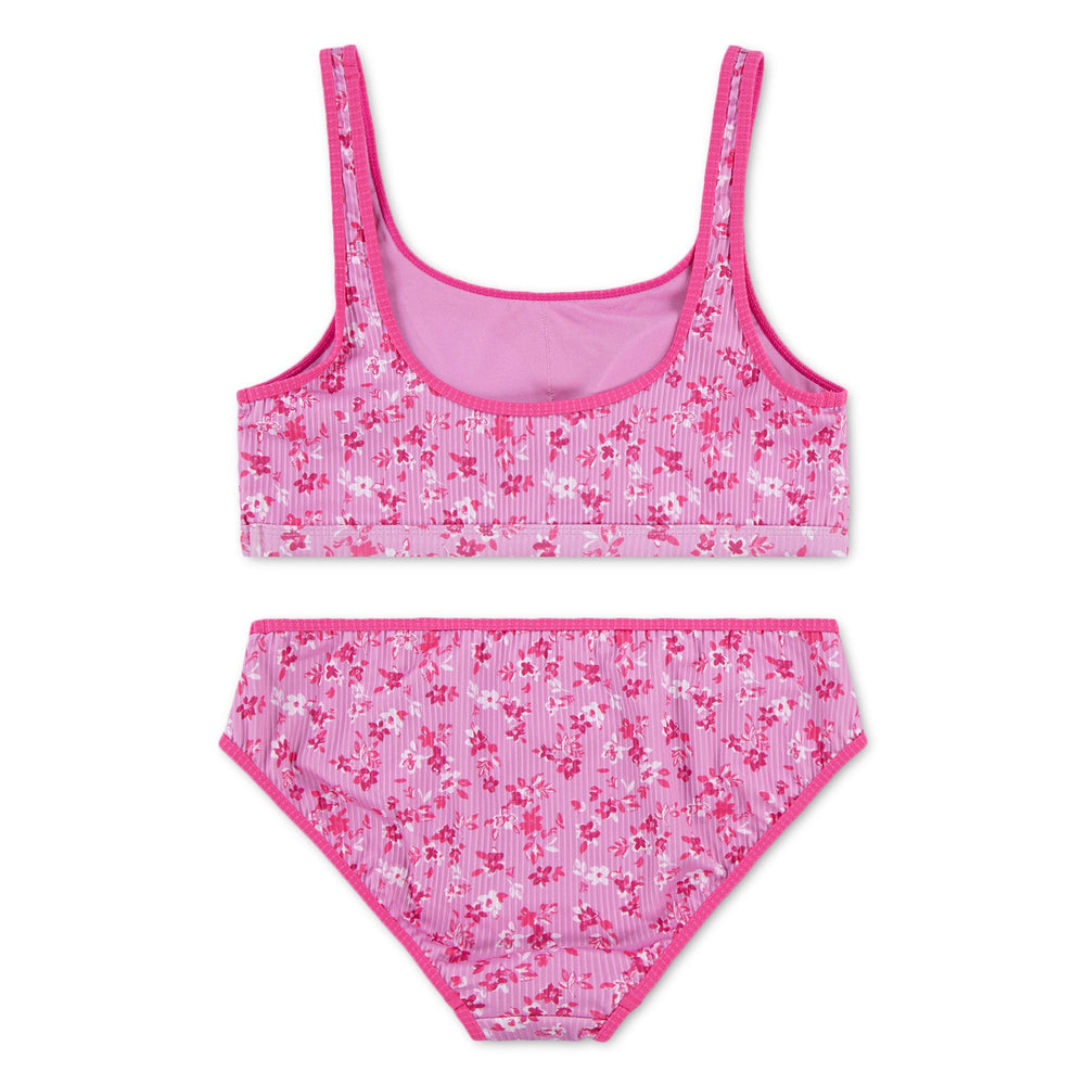 Les deux pièces sont réalisées en maille jacquard côtelée pour maillot de bain, avec imprimé floral intégral.