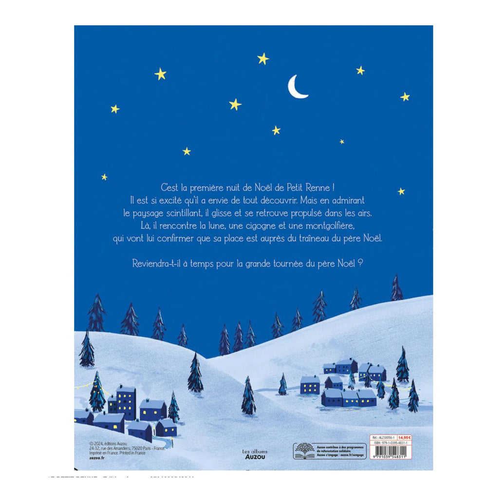 Découvrez LA PREMIÈRE NUIT DE NOËL DE PETIT RENNE, un magnifique livre édité par la marque Auzou. Cet ouvrage raconte l'histoire touchante du Petit Renne qui vit sa première nuit de Noël. Malgré son anxiété et son excitation, Petit Renne s'aventure courageusement dans le monde enneigé pour aider le Père Noël à distribuer les cadeaux. Ce livre est un merveilleux récit qui introduit les jeunes lecteurs à l'esprit de Noël et à l'importance de la bravoure et de l'amitié.