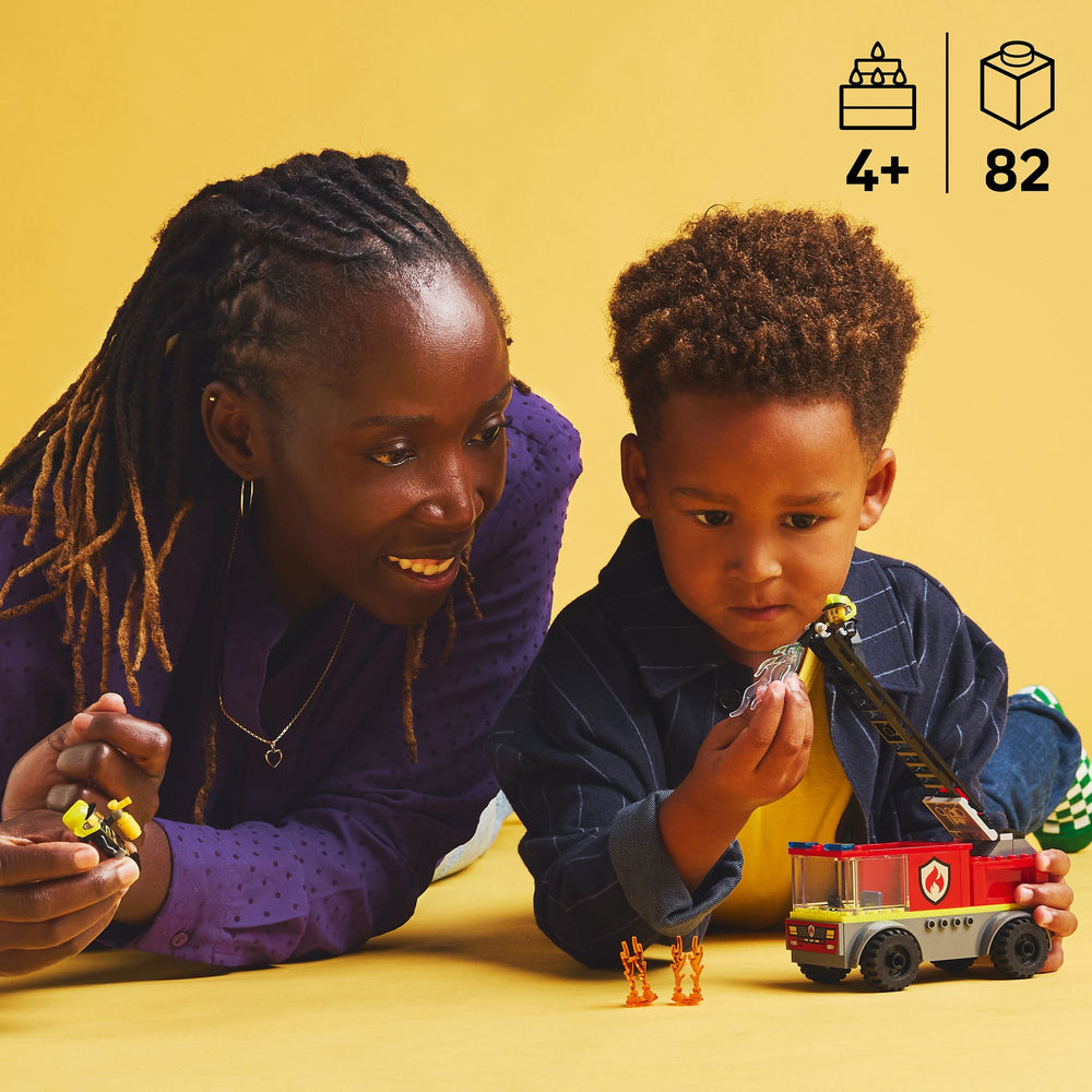 Ce camion de pompiers avec échelle LEGO® City avec 2 pompiers inspirera de belles aventures aux amateurs de camions de pompiers de 4 ans et plus.