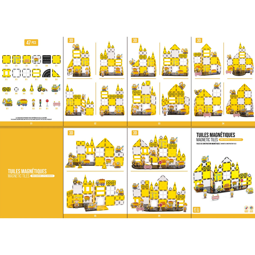 Ce coffret de tuiles magnétiques sur le thème du chantier permet aux enfants de construire leur propre site de construction à l’aide de pièces magnétiques colorées et faciles à assembler. Les enfants peuvent créer des bâtiments, des véhicules et des structures inspirées du monde des travaux tout en développant leur imagination, leur motricité fine et leur sens de la logique.