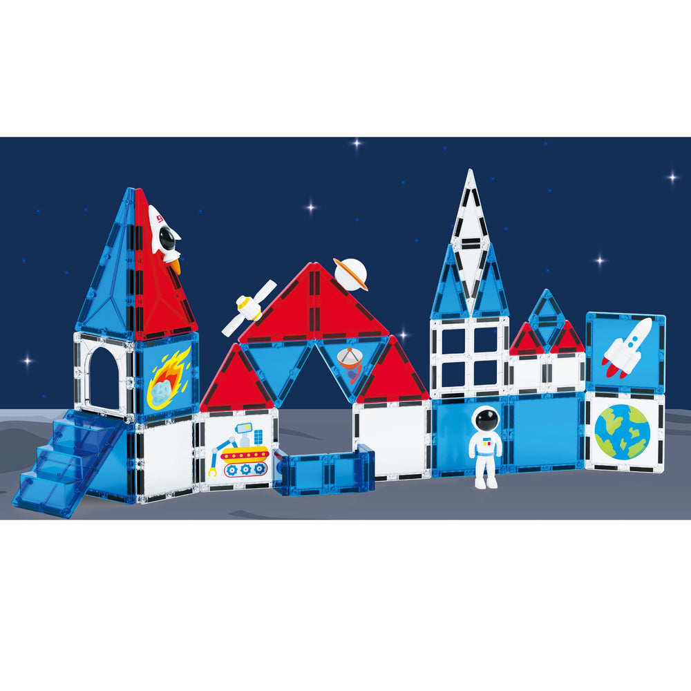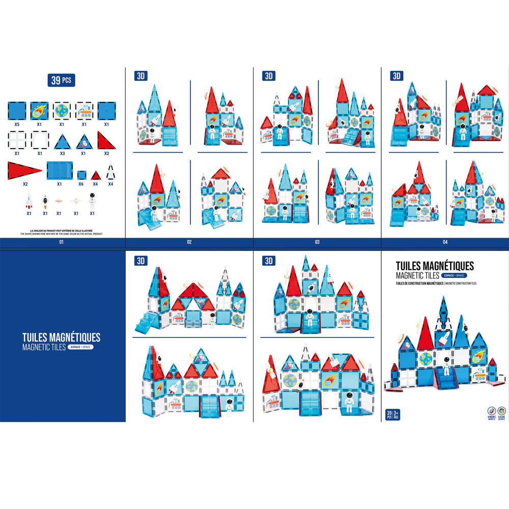 Direction l’espace avec cet ensemble de tuiles magnétiques à thème spatial ! Les enfants peuvent construire leur propre station spatiale, des fusées ou des bases lunaires grâce aux tuiles magnétiques colorées et faciles à manipuler. En explorant les formes et les structures, ils développent leur imagination, leur logique et leur motricité fine tout en découvrant les principes de base de l’approche STEAM (Science, Technologie, Ingénierie, Art et Mathématiques).