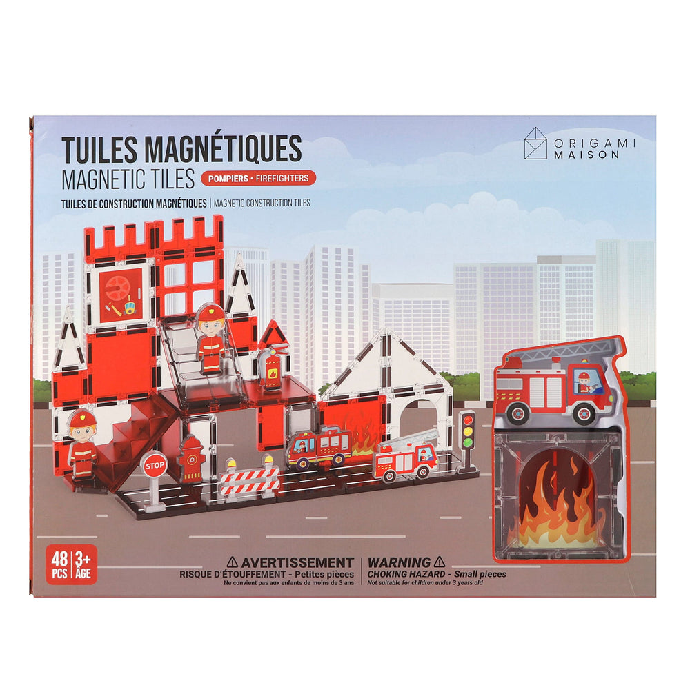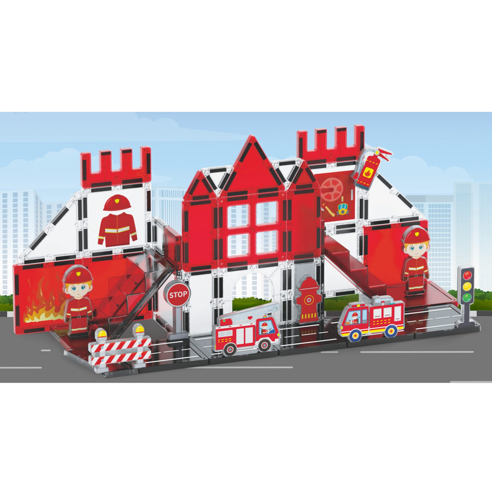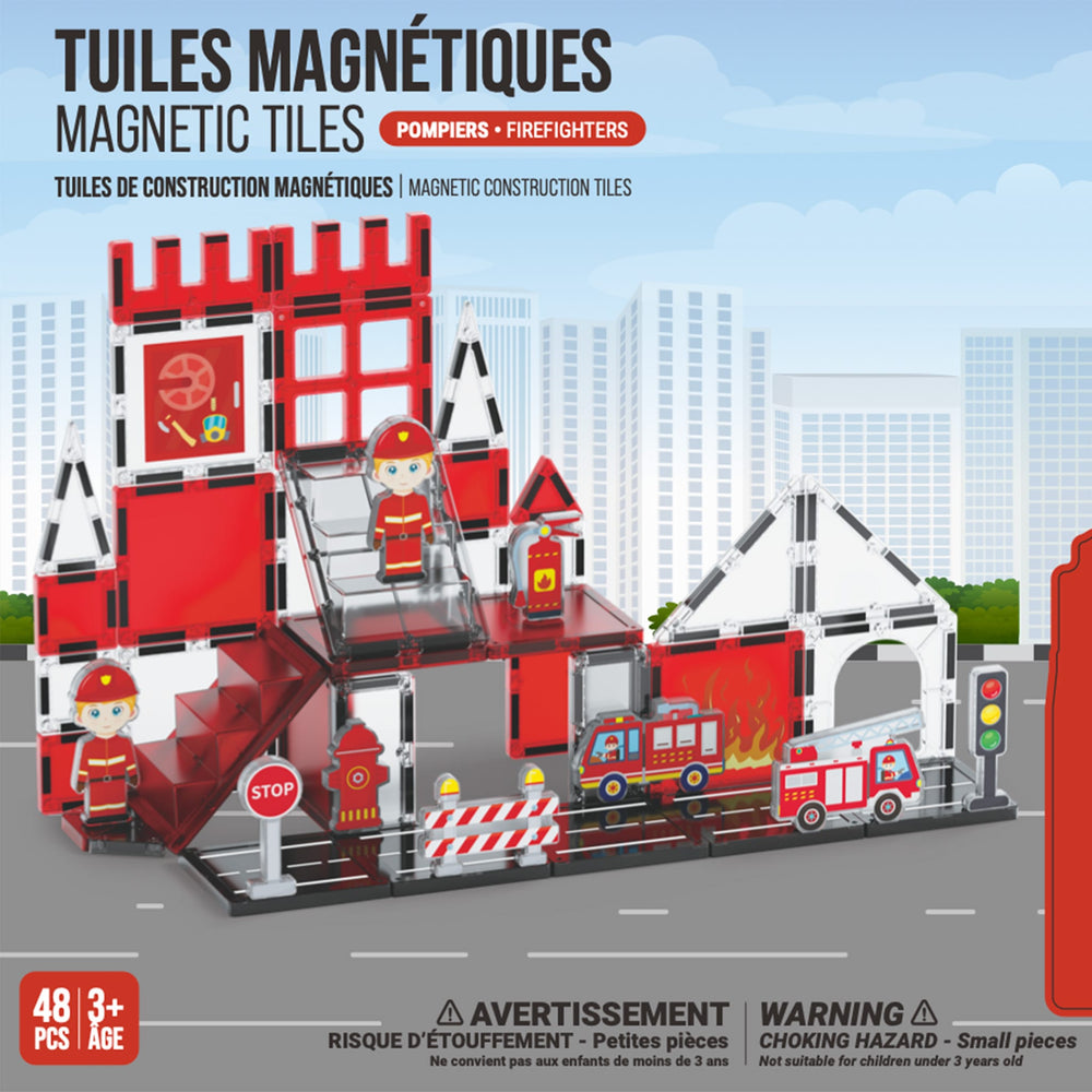 Les petits héros du quotidien vont adorer cet ensemble de tuiles magnétiques à thème pompiers ! Avec ses tuiles colorées et ses accessoires détaillés, ils pourront construire leur propre caserne de pompiers, des camions d’intervention et des scènes de sauvetage. Ce jeu amusant et éducatif stimule l’imagination, la logique et la coordination, tout en initiant les enfants à l’approche STEAM (Science, Technologie, Ingénierie, Art et Mathématiques).