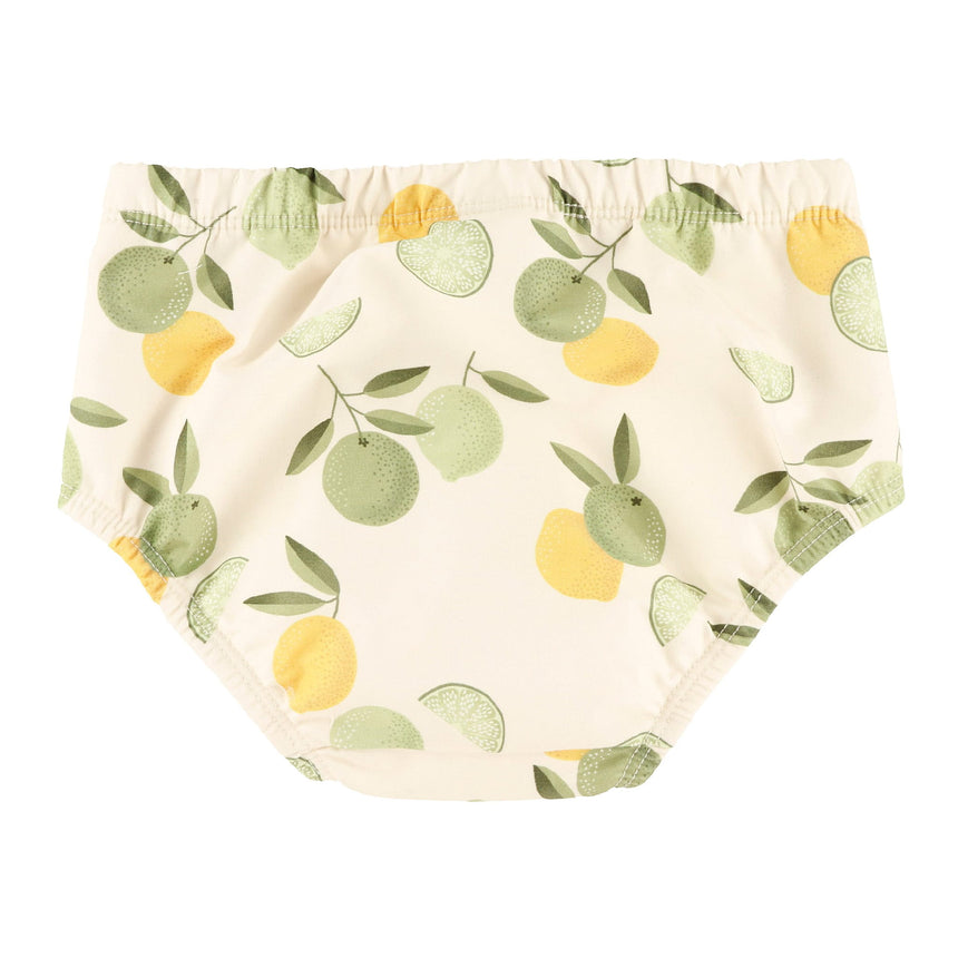 Quand la vie vous offre des citrons, prenez la direction de la plage avec votre bout de chou! Cette couche de bain fruitée présente notre imprimé de citrons et limes assorti aux maillots de bain disponibles pour toute la famille. Les élastiques au niveau des jambes et de la taille permettent à la couche de rester en place pendant que vos enfants pataugent, roulent ou courent dans l’eau. Pour des changements de couches rapides, des boutons-pression sont présents de chaque côté.