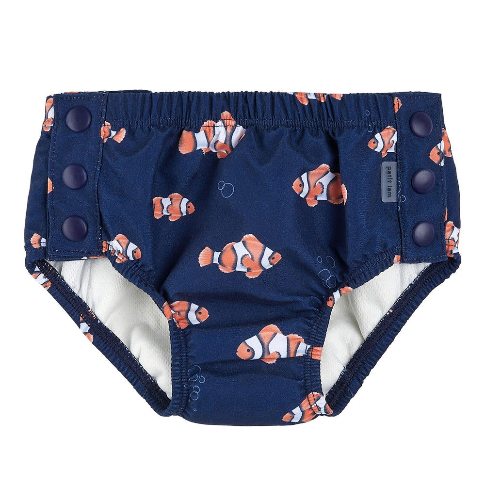 Parfaite pour barboter dans la pataugeoire ou jouer dans le sable à la plage, cette couche de bain confortable est assortie aux shorts de bain, chapeaux et barboteuses de la même collection. Avec son imprimé de poisson-clown, il va adorer faire le pitre en famille pendant les vacances. Les boutons-pression des deux côtés facilitent le changement de couches.