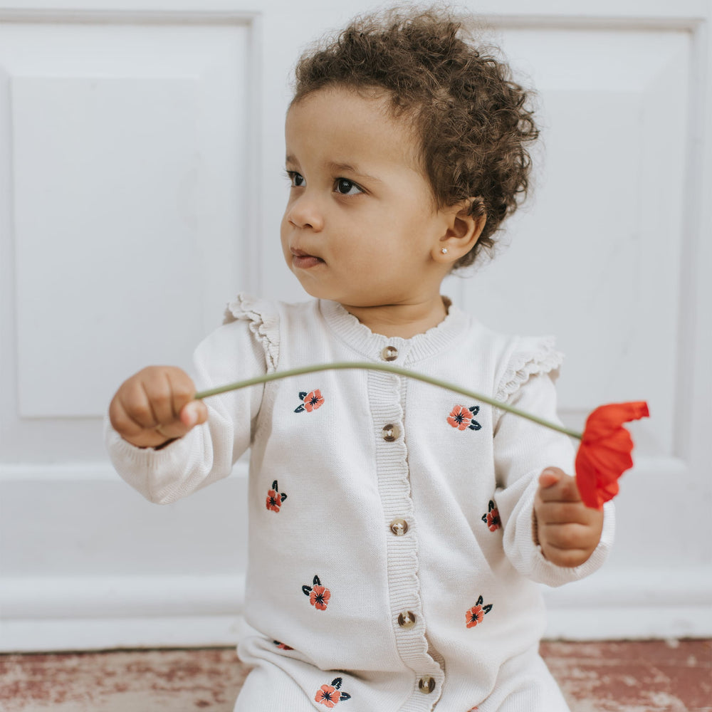 Cette adorable barboteuse d’inspiration vintage est confectionnée dans une maille jersey douce et ornée d’un motif Poppy sur le devant. Cette pièce intemporelle est parfaite pour être transmise de génération en génération et un bonnet assorti est disponible pour compléter le look. Avec ses boutons sur le devant, elle s’enfile et s’enlève facilement, permettant à bébé de rester bien au chaud et libre de ses mouvements.