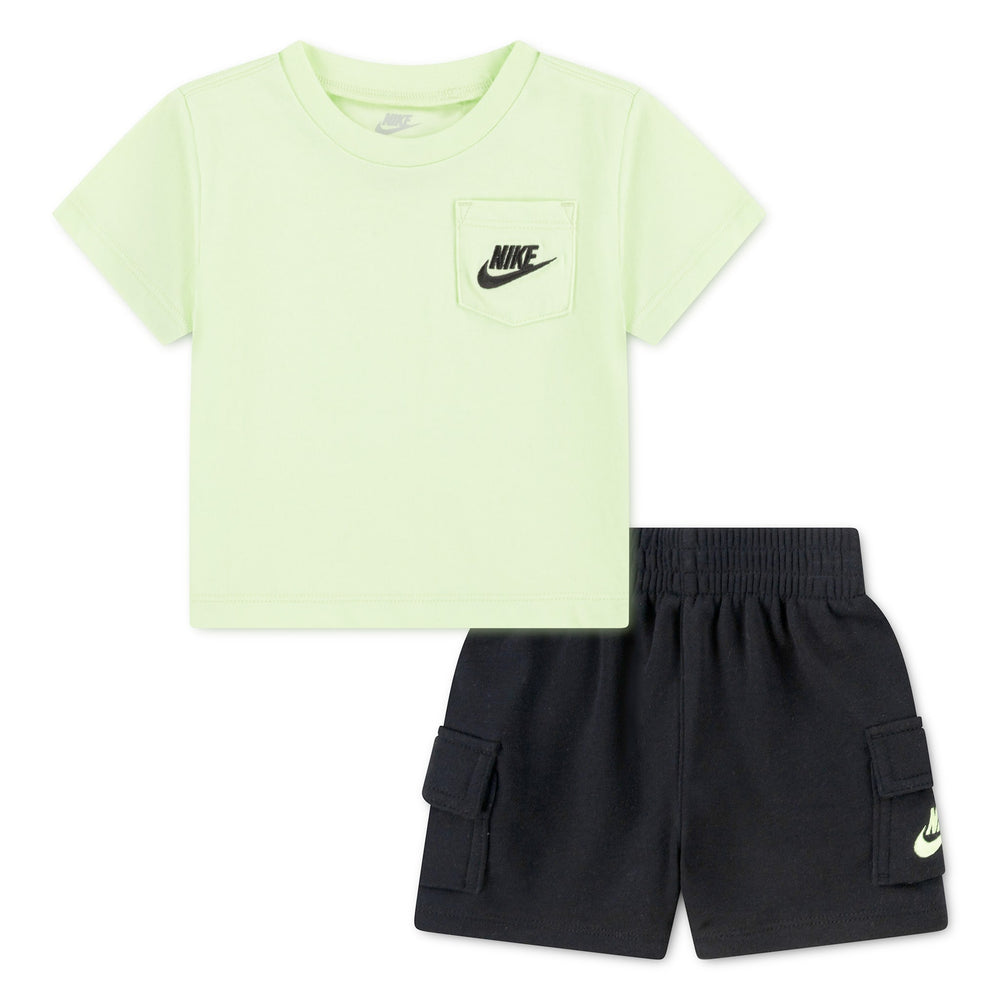 Cet ensemble 2 pièces signé Nike est une solution simple pour habiller votre petit, peu importe le programme de la journée. Le t-shirt adopte une coupe oversize avec des épaules tombantes pour un ajustement décontracté, une encolure ras-du-cou sans étiquette pour un confort sans irritation, et une poche poitrine qui ajoute une touche amusante. Le short en molleton léger (French terry) est équipé de poches cargo et d’une taille élastique pour un ajustement confortable.