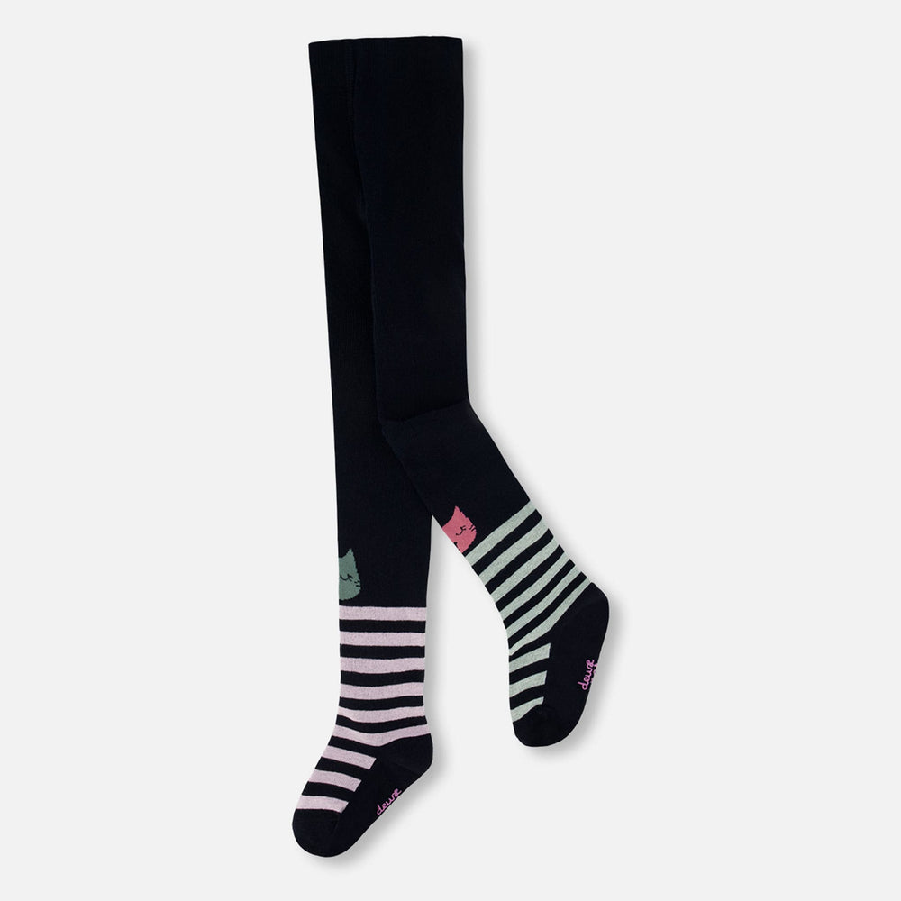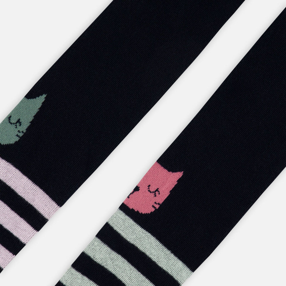 Nos collants en tricot bleu foncé sont la touche parfaite pour ajouter fun et confort à n’importe quelle tenue pleine de fantaisie. Confectionnés dans un mélange doux de coton avec une touche d’élasthanne et tricotés pour plus d’élasticité, ces collants offrent un ajustement confortable qui accompagne votre petite tout au long de la journée. Chaque jambe a des rayures de couleurs différentes, et d'adorables chats imprimés sur les genoux apportent une touche joyeuse et fantaisiste à n’importe quel look, parfaits pour chaque jour de la semaine.