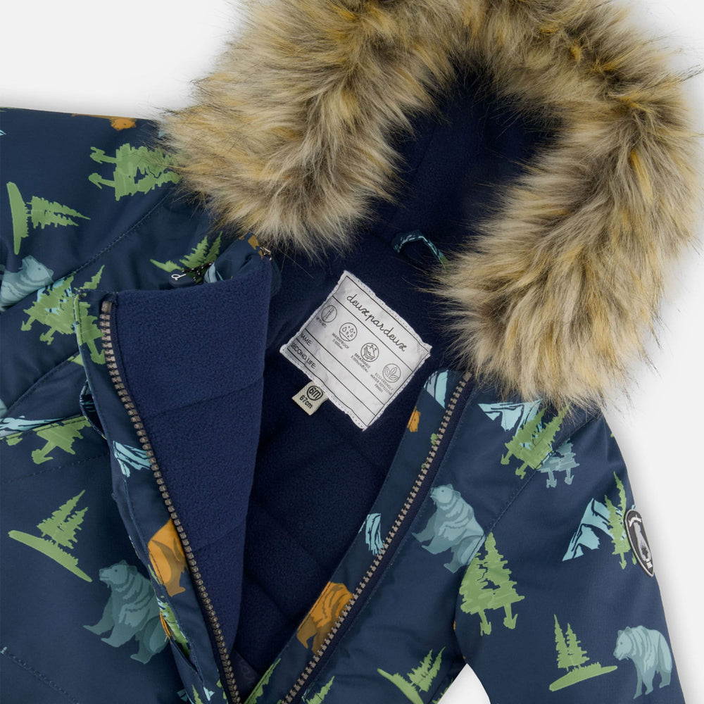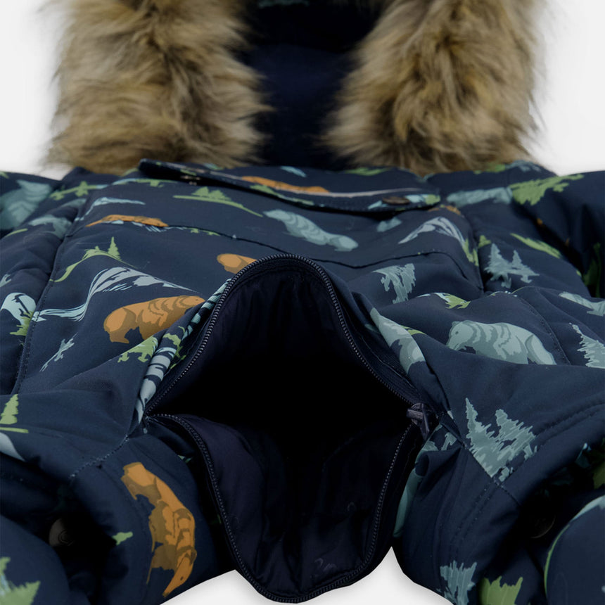 Notre combinaison de neige BABY PLAY dégradé bleu à imprimé de dinosaures est conçue pour garder les tout-petits bien au chaud et au sec même par temps hivernal rigoureux. Imperméable, respirante et résistante à l’abrasion pour une durabilité accrue, cette combinaison offre une protection contre le froid jusqu’à -30°C (-22°F) et comprend un corps et un capuchon doublés de polaire avec une garniture amovible en fausse fourrure, une taille ajustable, des pare-neige à chaque cheville et des poignets extensibles pour accompagner la croissance de bébé. Des mitaines et chaussons amovibles ainsi qu’un cache-cou en polaire sont inclus pour plus de chaleur et de confort, tandis que la conception compatible avec le siège d’auto permet d’attacher bébé en toute sécurité sans avoir à le découvrir.