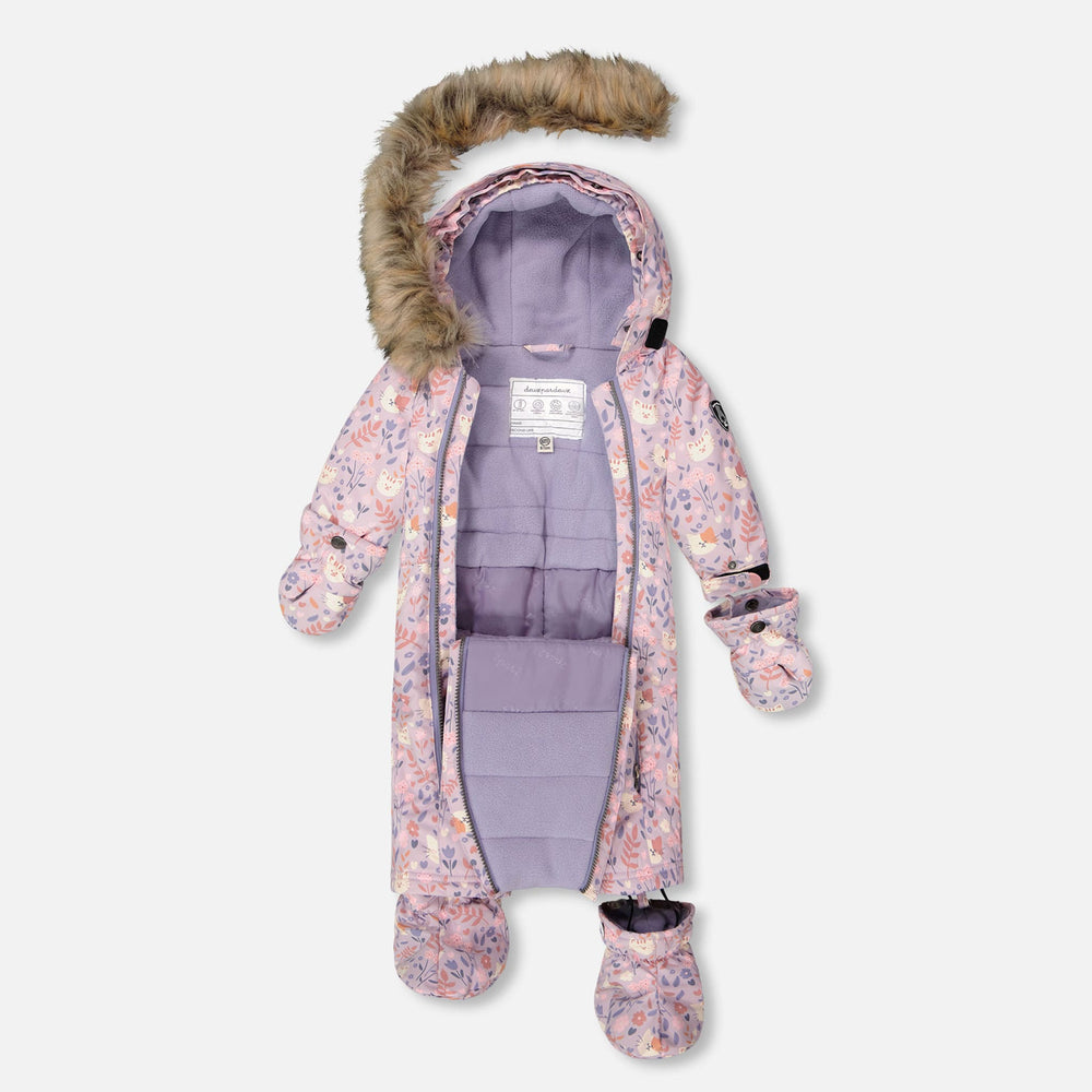 Notre combinaison de neige BABY PLAY vert à imprimé de chats est conçue pour garder les tout-petits bien au chaud et au sec même par temps hivernal rigoureux. Imperméable, respirante et résistante à l’abrasion pour une durabilité accrue, cette combinaison offre une protection contre le froid jusqu’à -30°C (-22°F) et comprend un corps et un capuchon doublés de polaire avec une garniture amovible en fausse fourrure, une taille ajustable, des pare-neige à chaque cheville et des poignets extensibles pour accompagner la croissance de bébé. Des mitaines et chaussons amovibles ainsi qu’un cache-cou en polaire sont inclus pour plus de chaleur et de confort, tandis que la conception compatible avec le siège d’auto permet d’attacher bébé en toute sécurité sans avoir à le découvrir.