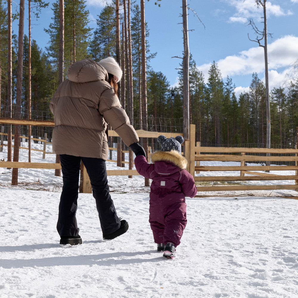 Notre combinaison de neige en duvet Reimatec pour tout-petits offre de nombreuses caractéristiques pratiques : toutes les coutures sont scellées et imperméables, et la surface est déperlante et anti-salissures. L’isolation est composée à 60 % de duvet et à 40 % de plumes certifiés RDS, avec un rembourrage supplémentaire au siège pour plus de chaleur. La doublure lisse facilite l’enfilage même pour les petits qui bougent beaucoup, et la capuche détachable est sécuritaire car elle se retire facilement si elle s’accroche. Une petite poche zippée garde les trésors en sécurité. Les boucles en silicone durables maintiennent les ourlets des jambes en place, protégeant les chevilles de l’humidité et du froid. Cette combinaison d’hiver compatible avec la sécheuse est idéale pour ramper à la campagne ou se promener en ville !