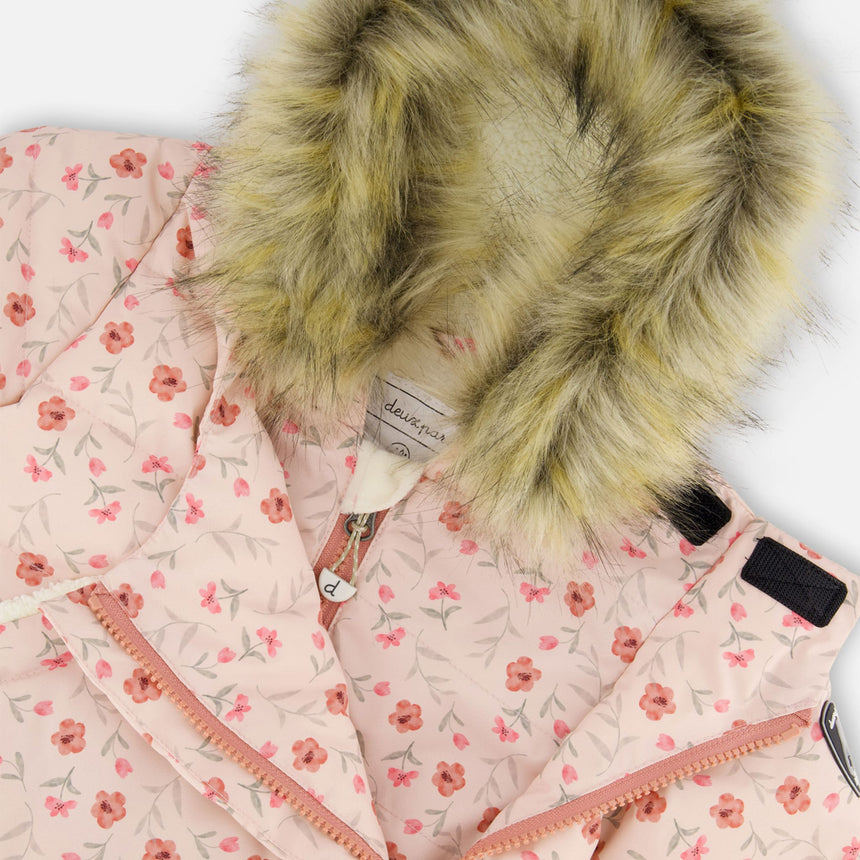 -Capuchon avec fourrure synthétique amovible et pare-neige autour du capuchon
