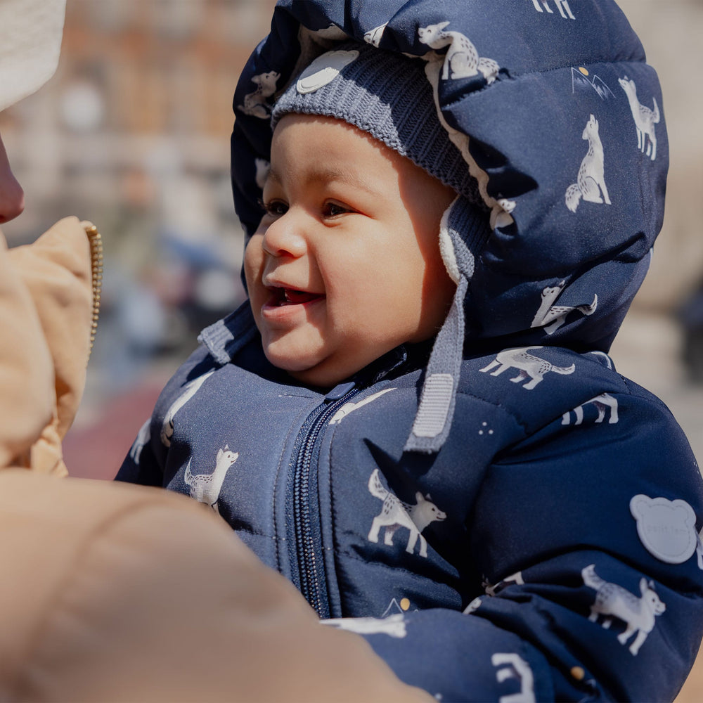 Si votre tout-petit est comme un poisson dans la neige, cette combinaison « Wolf Pup » est le choix parfait pour la saison froide à venir. Conçue pour le garder au chaud et confortable jusqu’à -20 °C, elle offre une protection coupe-vent et déperlante afin que rien n’entrave ses sorties en plein air. Les tailles pour poussette sont dotées de chaussons intégrés, tandis que les tailles plus grandes (12-24M) ont un élastique aux chevilles pour bloquer le froid. Une capuche ajustée au visage et des ouvertures de manches avec pare-vent assurent une coupe près du corps tout en restant respirante, idéale pour une tenue toute la journée.