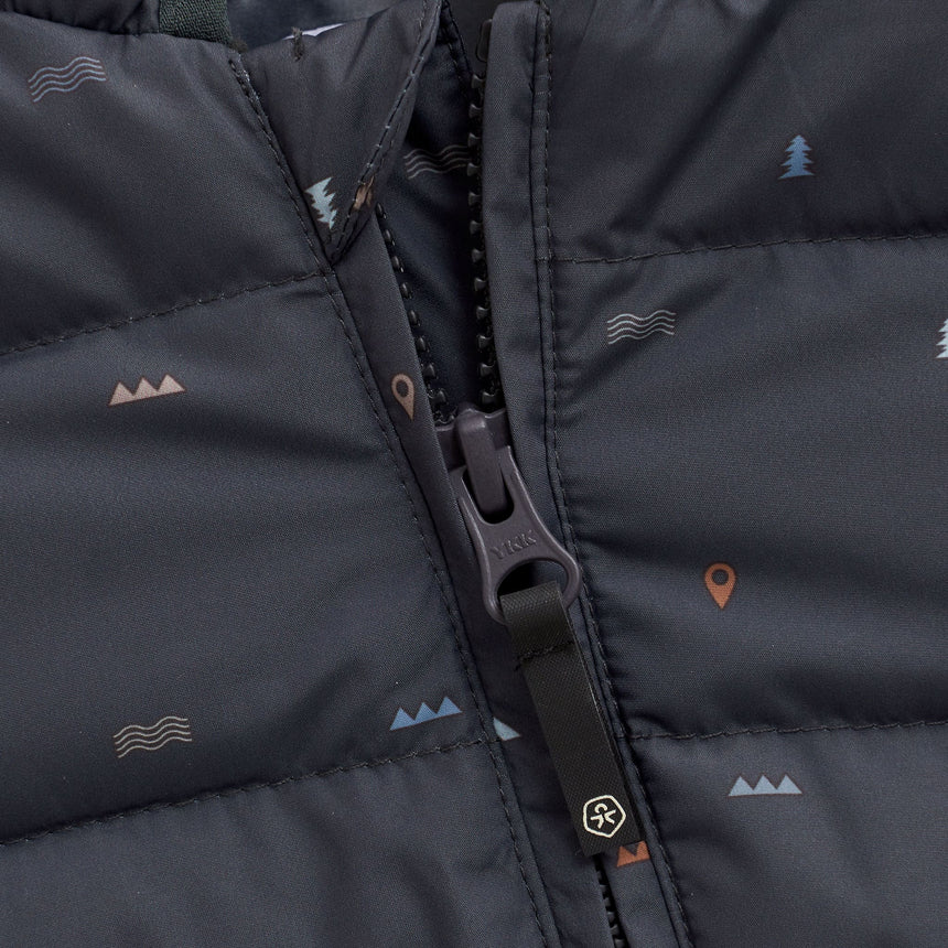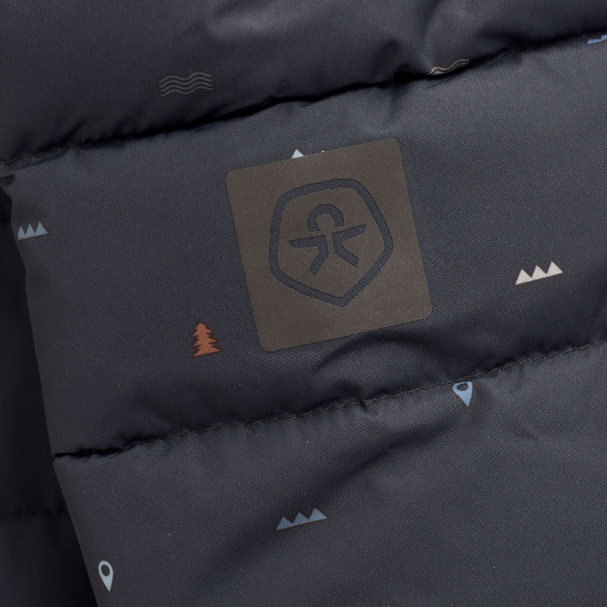 Combinaison chaude en matière matelassée résistante avec imprimé intégral. Respirante, coupe-vent et imperméable, elle permet à votre enfant de rester dehors sous la pluie, la neige et le vent sans avoir froid ni se mouiller. Résistance à l'usure testée à > 60 000 frottements, pression de colonne d'eau à 10 000 mm et respirabilité à 8 000 g. La combinaison est dotée d'une fermeture éclair de qualité à l'avant et sur les poches extérieures. Le protège-menton assure une sensation de douceur sous le menton. La combinaison est dotée d'une capuche fixe. Des éléments réfléchissants au dos et sur les manches augmentent la visibilité. Une étiquette nominative à l'intérieur facilite l'identification. Revêtement BIONIC FINISH® ECO. Certifié GRS - Fabriqué avec plus de 50 % de matériaux recyclés.