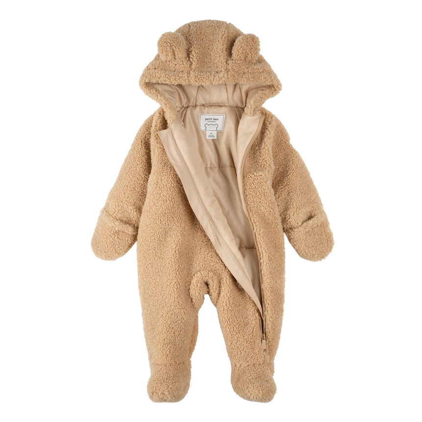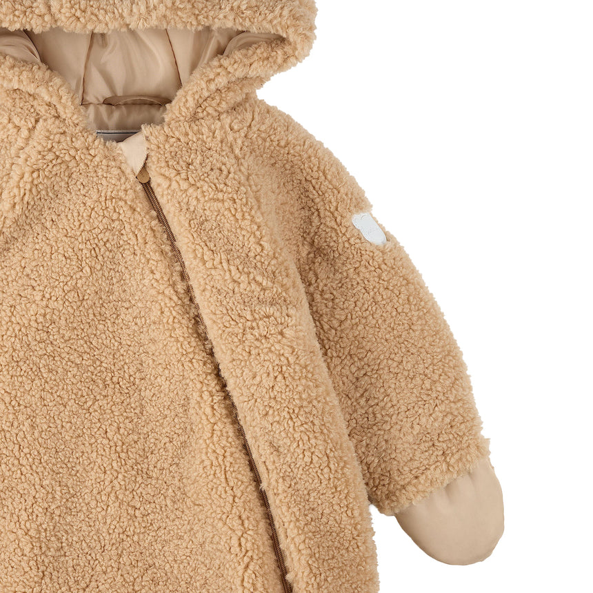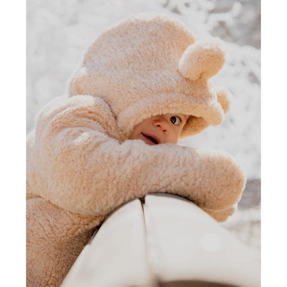 Enveloppez votre tout-petit de chaleur et de câlins avec ce combi-pilote en sherpa style ourson. Doublé d’un jersey en coton biologique tout doux, il est parfait pour les mois les plus froids et pour le garder confortablement au chaud pendant qu’il dort dans la poussette. Les moufles réversibles protègent ses petites mains, avec la possibilité de les laisser ouvertes pour découvrir la neige pour la première fois. Les oreilles d’ours sur la capuche ajoutent une touche de mignonnerie, en faisant un cadeau irrésistible pour de nouveaux parents.