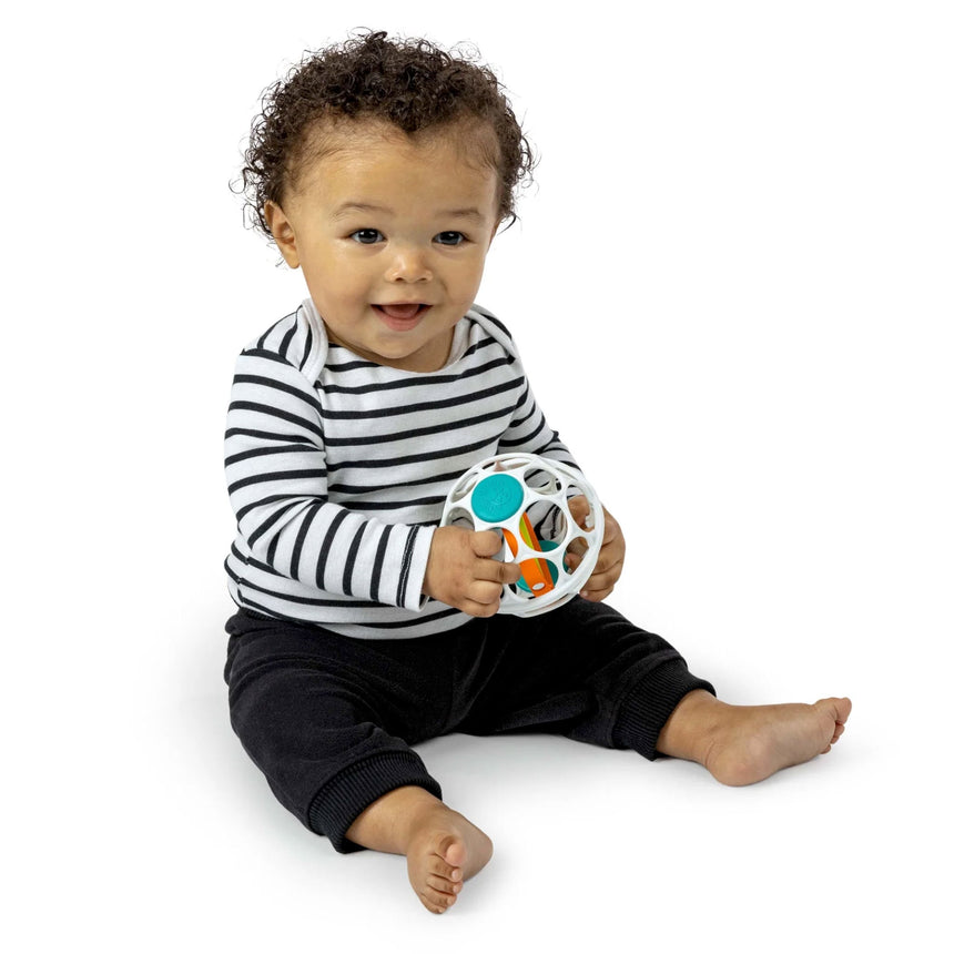Aidez bébé à saisir facilement de nouvelles découvertes avec le jouet hochet Baby Einstein Grip & Spin Oball. Cette boule rotative facile à saisir, sans BPA, comprend un miroir de découverte de soi, des perles de hochet attrayantes et des boucles internes colorées qui tournent lorsqu'elles sont secouées pour captiver bébé à la maison ou en déplacement. Les nourrissons et les tout-petits adoreront serrer et saisir le cadre flexible de l’Oball ou secouer et faire rouler la balle pour entendre des bruits de hochet. Regardez Roxy l'oiseau rouge tourner ou laissez bébé apercevoir son doux reflet dans le miroir sécurisé pour bébé ! Un excellent cadeau ou premier jouet pour un bébé garçon ou une petite fille âgé de 0 mois et plus. Parfait pour passer du temps sur le ventre et jouer assis, ou pour découvrir en déplacement.