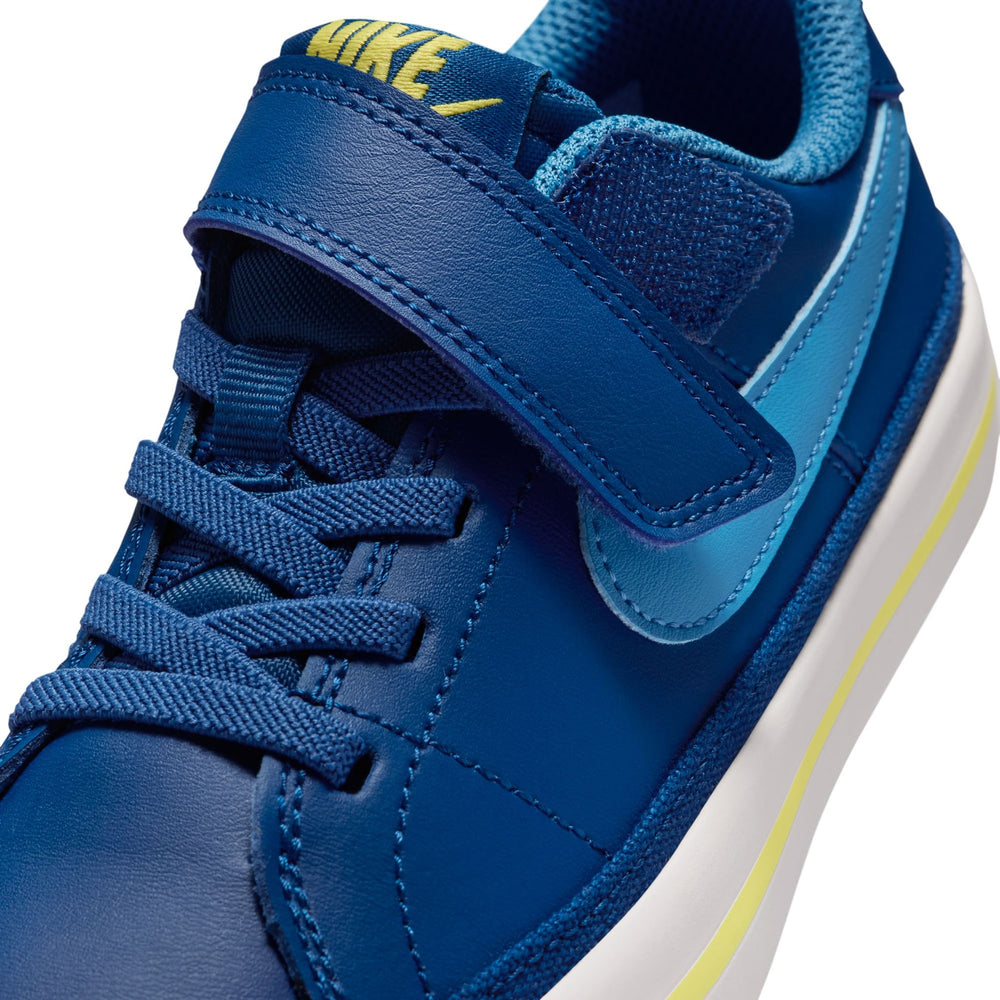 La Nike Court Legacy apporte un style tennis classique aux pieds des enfants. Résistante et confortable, elle présente des coutures emblématiques et un Swoosh rétro. Lorsque ton bout de chou enfile ses chaussures, c'est jeu, set et match.