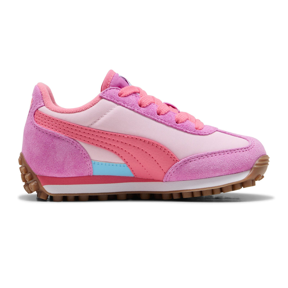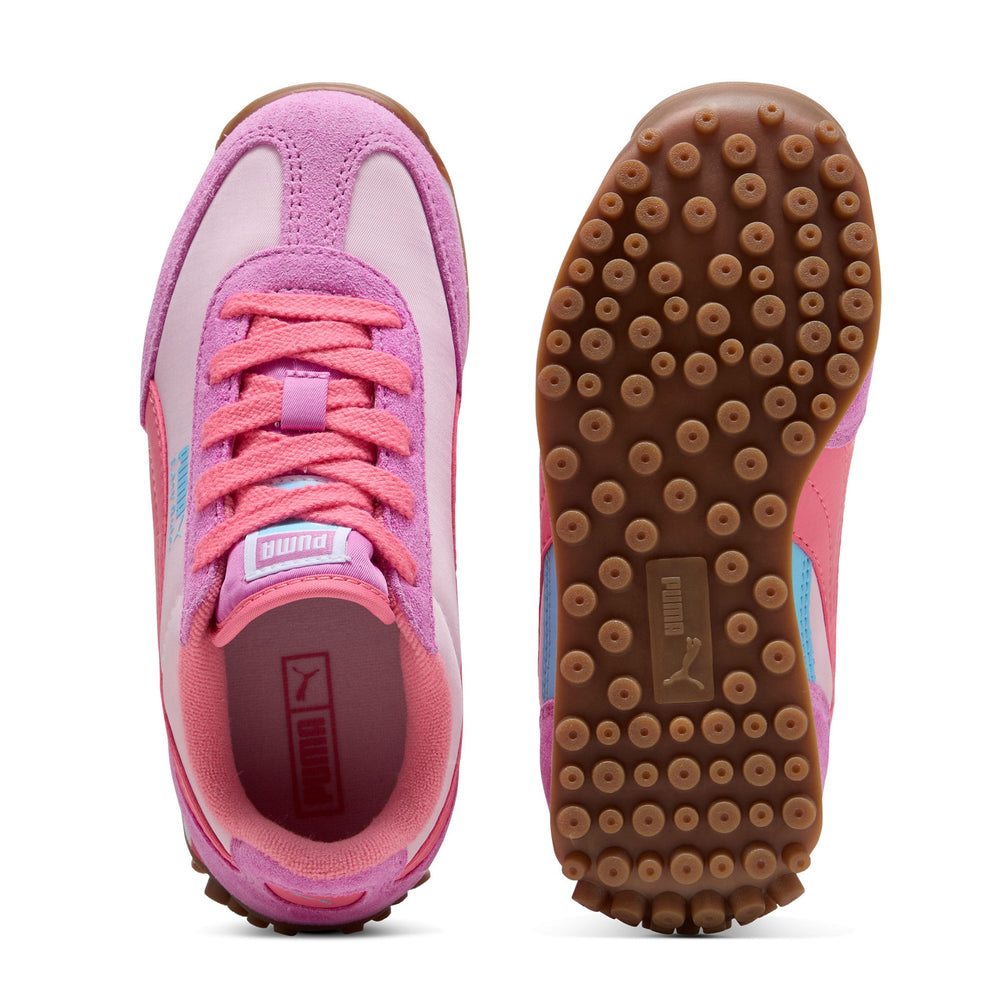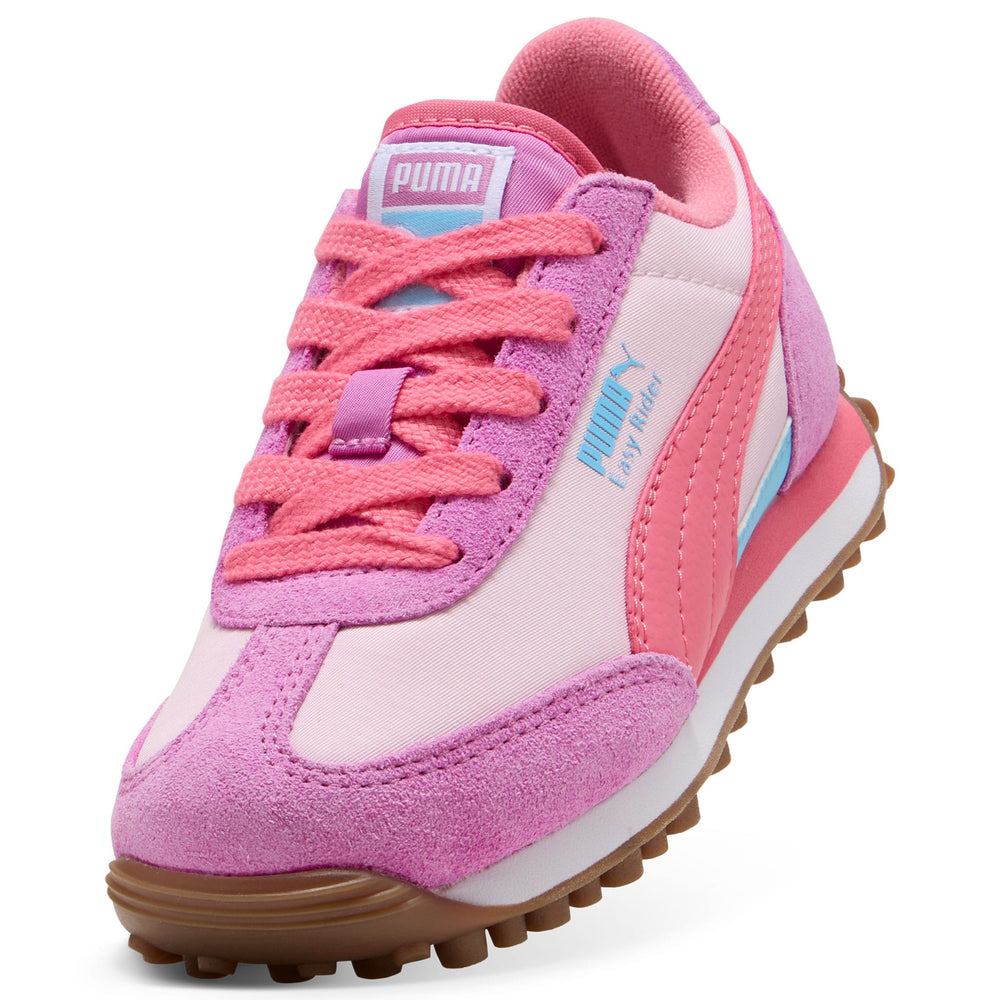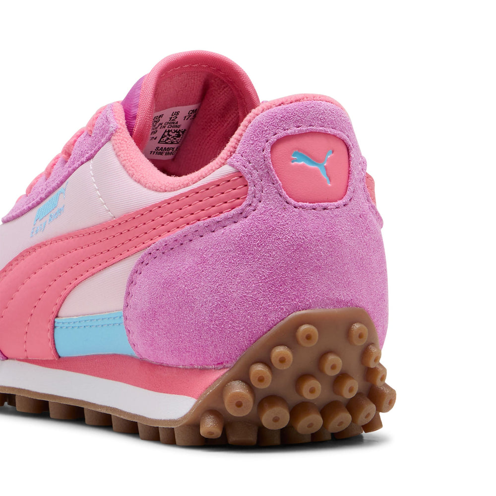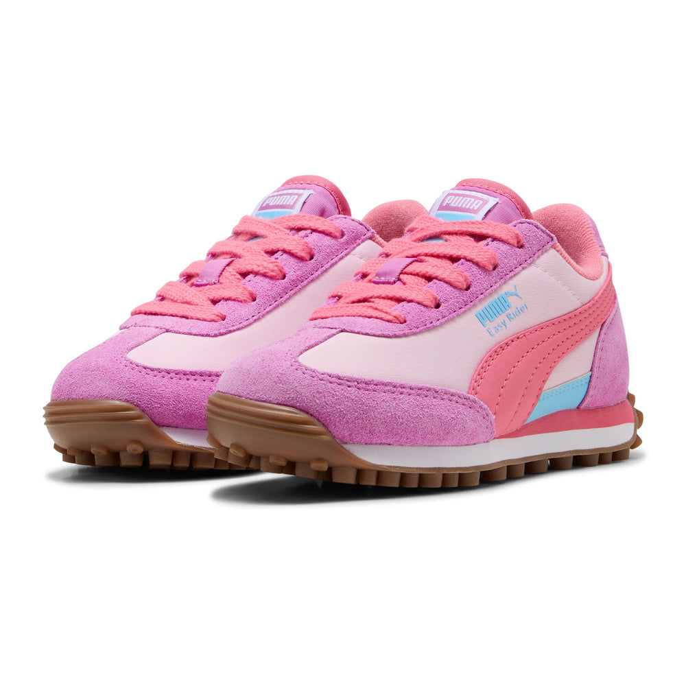 Sortie à la fin des années 70, l’Easy Rider de PUMA marque les esprits lorsque la course passe des pistes d’athlétisme à la rue. Elle fait son retour aujourd'hui avec son profil mince classique et son style rétro toujours intacts. Cette version pour enfants, dotée d'une tige en textile et de superpositions en suède, apportera à coup sûr une touche ludique et un style rétro à n'importe quel look.