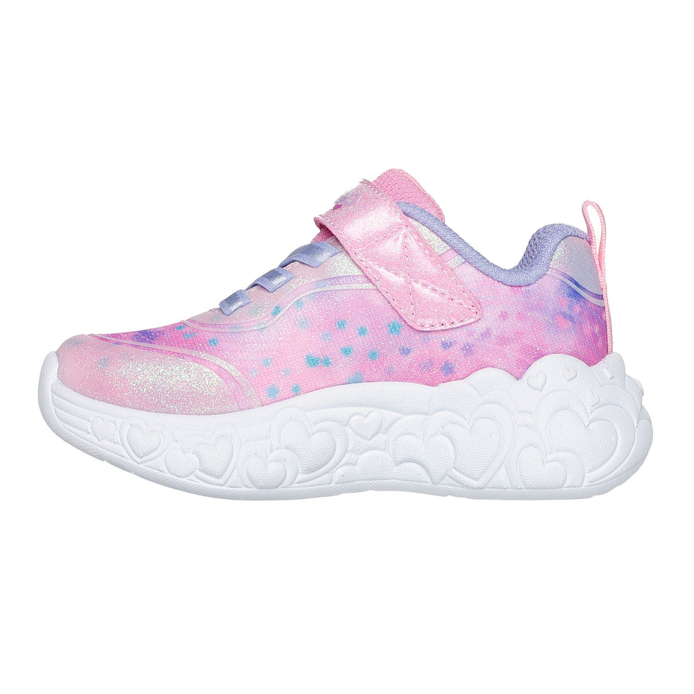 Le style sportif s’illumine et devient irrésistible avec les Skechers S-Lights® : Eternal Heart Lights. Ce modèle lumineux présente une tige en mesh scintillant et matière synthétique pailletée, une fermeture à lacets élastiques à l’avant, et une fermeture adaptative Skechers.