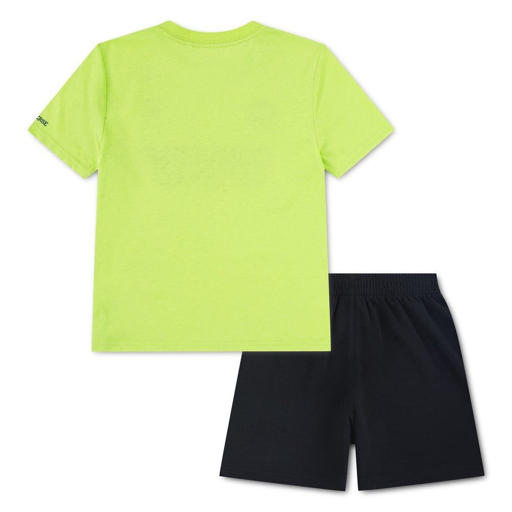 Cet ensemble deux pièces de Converse facilite l’habillage de votre petit All Star, que ce soit pour jouer ou se détendre. Le t-shirt à coupe standard présente des graphiques sportifs et offre une grande liberté de mouvement. Le short, doux et confortable, possède une taille élastique pour un ajustement agréable. Associez le tout à votre paire de Chucks préférée et c’est parti !