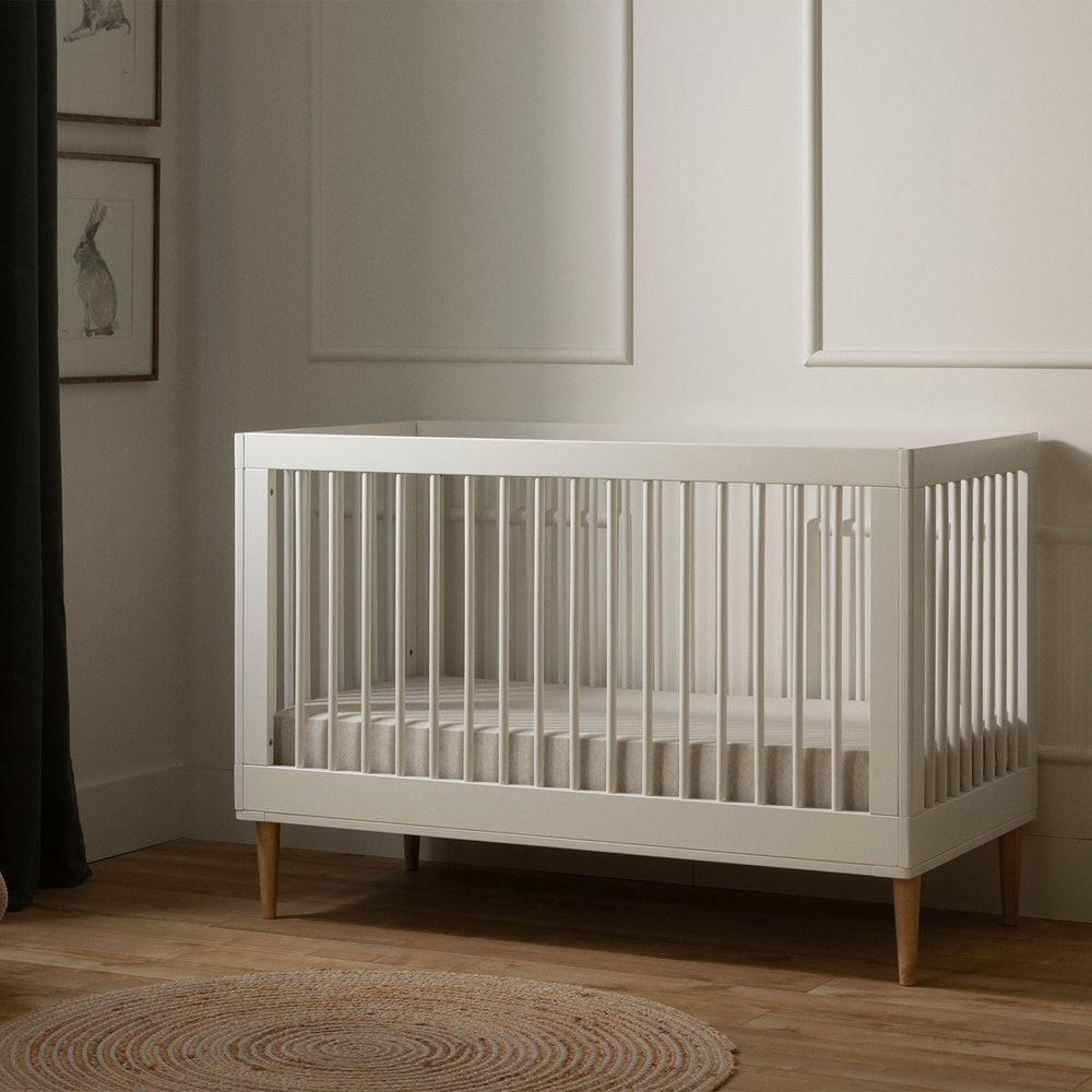 TENDANCE BOHO : On aime tellement l’allure bohémienne de ce lit pour bébé! Ses petits barreaux et ses pattes en angle faites de bois véritable lui donnent un look charmant et organique. Magnifique!