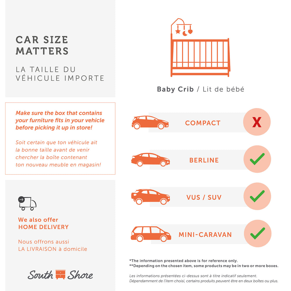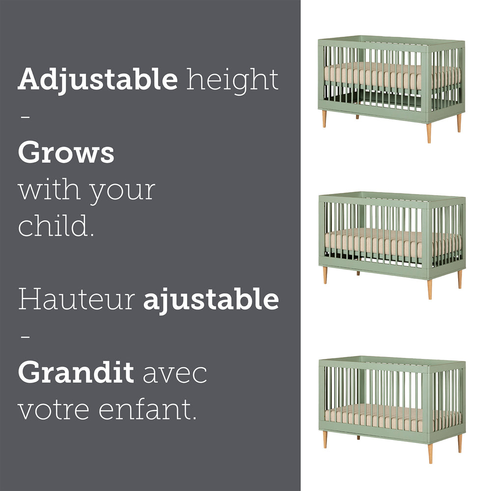 Comme les bébés grandissent super vite, il est important d’opter pour des meubles qui vont perdurer dans le temps. Ce lit de bébé est un véritable 3 en 1! Il est à la fois, une couchette, un lit de transition, et un petit lit sans bord. Il évoluera avec votre enfant, de nouveau-né à bambin! Pour ce faire, vous n’avez qu’à remplacer les barreaux à l’avant par une barre de transition (non-incluse), puis l’enlever une fois que bébé est devenu grand.