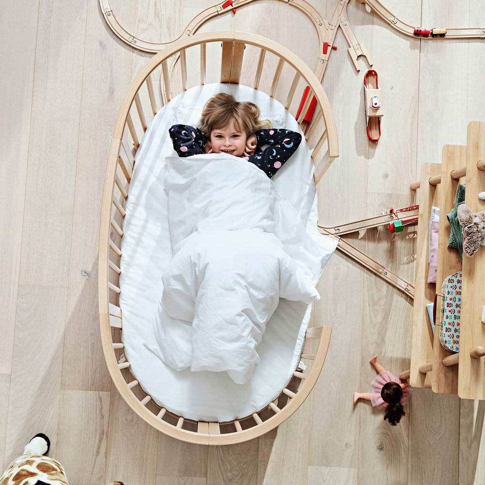 La couchette évolutive de votre bébé est le cœur de votre chambre de bébé. Fabriqué en bois de hêtre européen massif et réglable en hauteur, Stokke® Sleepi™ s'adapte aux besoins changeants de votre enfant en pleine croissance. Le design ovale doux enveloppe votre bébé en lui offrant confort et familiarité pour un sommeil réparateur et les plus doux des rêves. Le lit de bébé Stokke® Sleepi™ peut être utilisé de la naissance à 5 ans afin que votre enfant puisse profiter de son lit tout au long de son enfance. Ajustez la position en hauteur du matelas à mesure que votre enfant grandit et atteint le stade d'escalade. Une fois que votre enfant est assez grand pour entrer et sortir du lit tout seul, vous pouvez retirer les roulettes et un côté du lit pour un accès facile. Le concept Stokke® Sleepi™ a été développé dans un souci de sommeil réparateur et de sécurité. Il est disponible avec un nouveau matelas Sleepi™ ferme et respirant qui dépasse les normes de sécurité les plus élevées (vendu séparément). Accessoirisez avec la doublure en maille respirante et des textiles de haute qualité (vendu séparément). Stokke® Sleepi™ est certifié FSC® utilisant du bois provenant de sources responsables. FSC est une solution de gestion durable des forêts. Avec ce Stokke® Sleepi™, nous contribuons à prendre soin des forêts du monde entier.