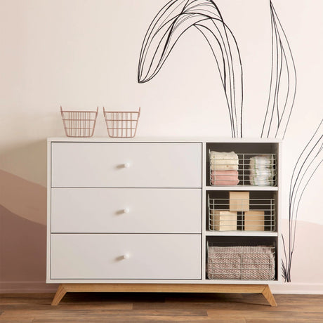 Commode 3 tiroirs Central Park - Blanc / Chêne rouge
