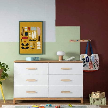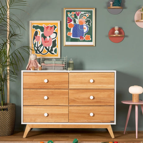 Commode 5 tiroirs Soho - Blanc / Naturel