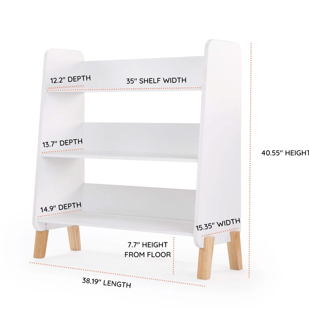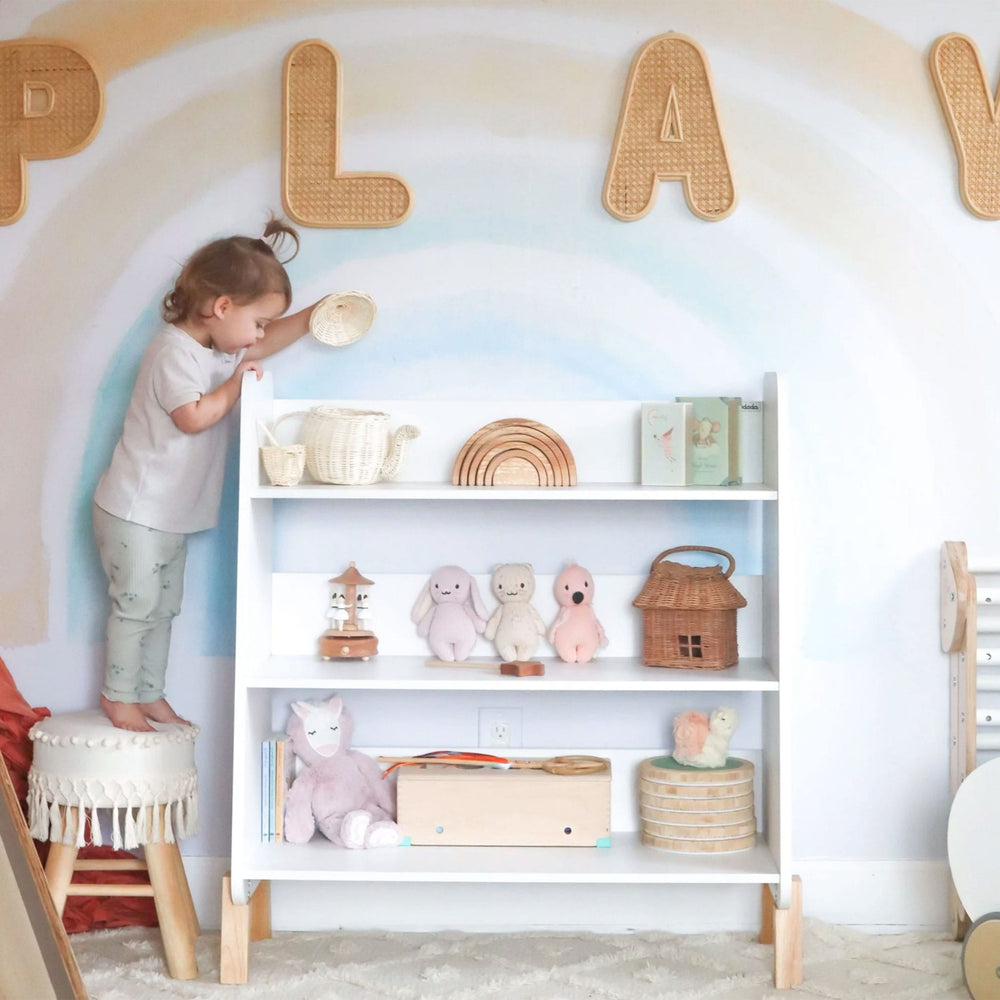 Gardez les objets les plus précieux de votre tout-petit à portée de main sur la bibliothèque Muse incassable, robuste et élégante. De jolis pieds en bois massif avec des joints artisanaux ajoutent une touche artisanale naturelle à la finition blanche classique, et trois étagères solides à hauteur accessible sont prêtes à remplir de trésors pour les tout-petits.