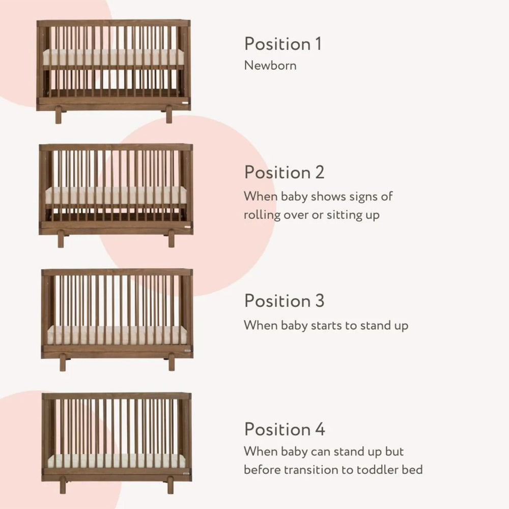 Le berceau se transforme en lit pour tout-petit, en lit de repos ou en lit au sol en quelques étapes simples