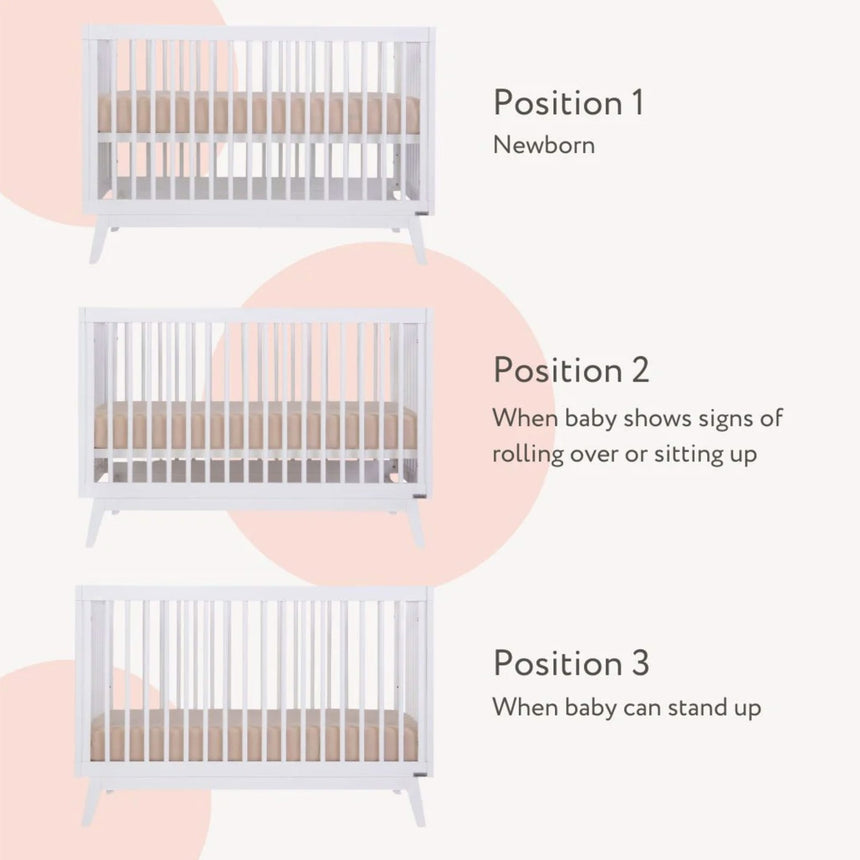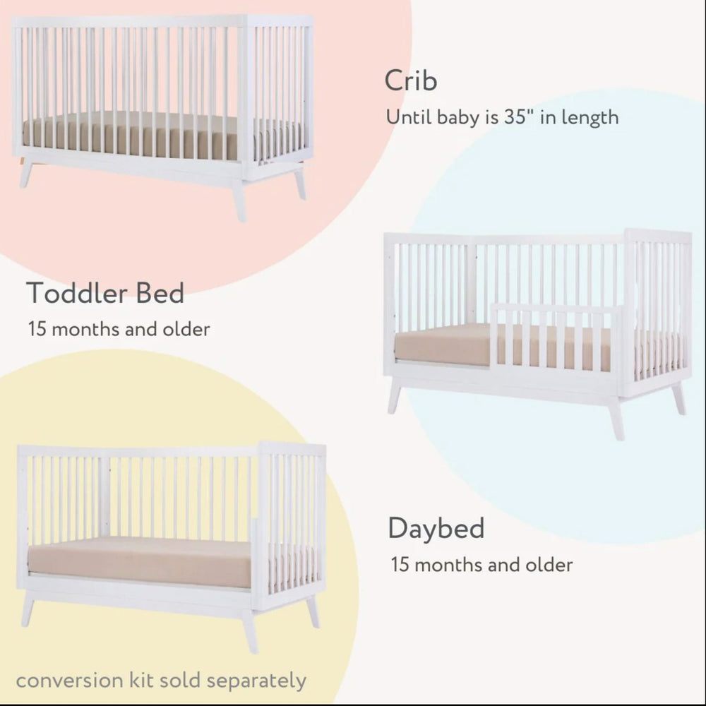 Fabriqué en Italie et certifié GREENGUARD Gold, le lit de bébé convertible 3-en-1 Soho met à jour un design scandinave ouvert classique avec des lignes modernes du milieu du siècle pour compléter n'importe quel style de pièce. Les pieds inclinés robustes se placent sous un cadre solide et les quatre murs permettent une circulation d'air facile. Avec trois positions de matelas disponibles, vous pouvez facilement ajuster la hauteur du lit en fonction de la croissance de votre bébé, du nouveau-né au tout-petit (kit de conversion lit pour tout-petit/lit de jour vendu séparément).