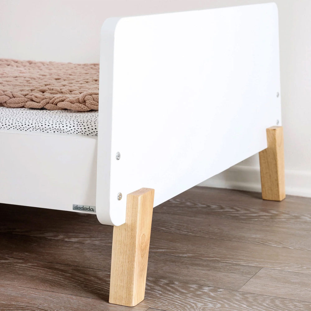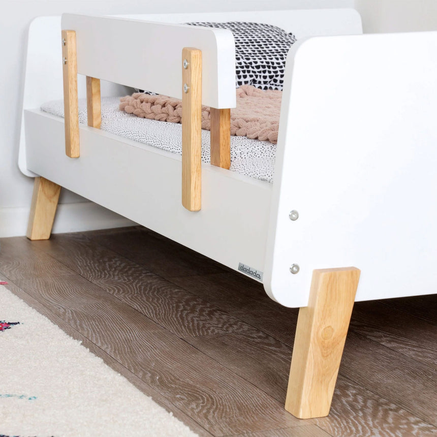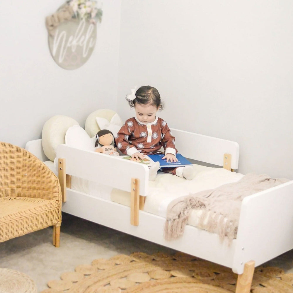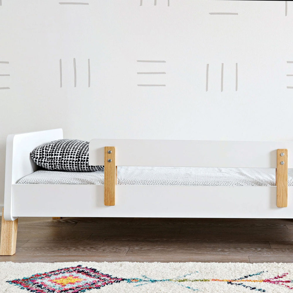 Un lit robuste conçu spécialement pour les tout-petits avec des courbes ludiques et des formes modernes pour faciliter la transition significative vers « un vrai lit ». Le profil bas et les deux rails amovibles offrent un lieu de couchage sûr et confortable qui aide votre tout-petit actif à entrer et à sortir facilement du lit.