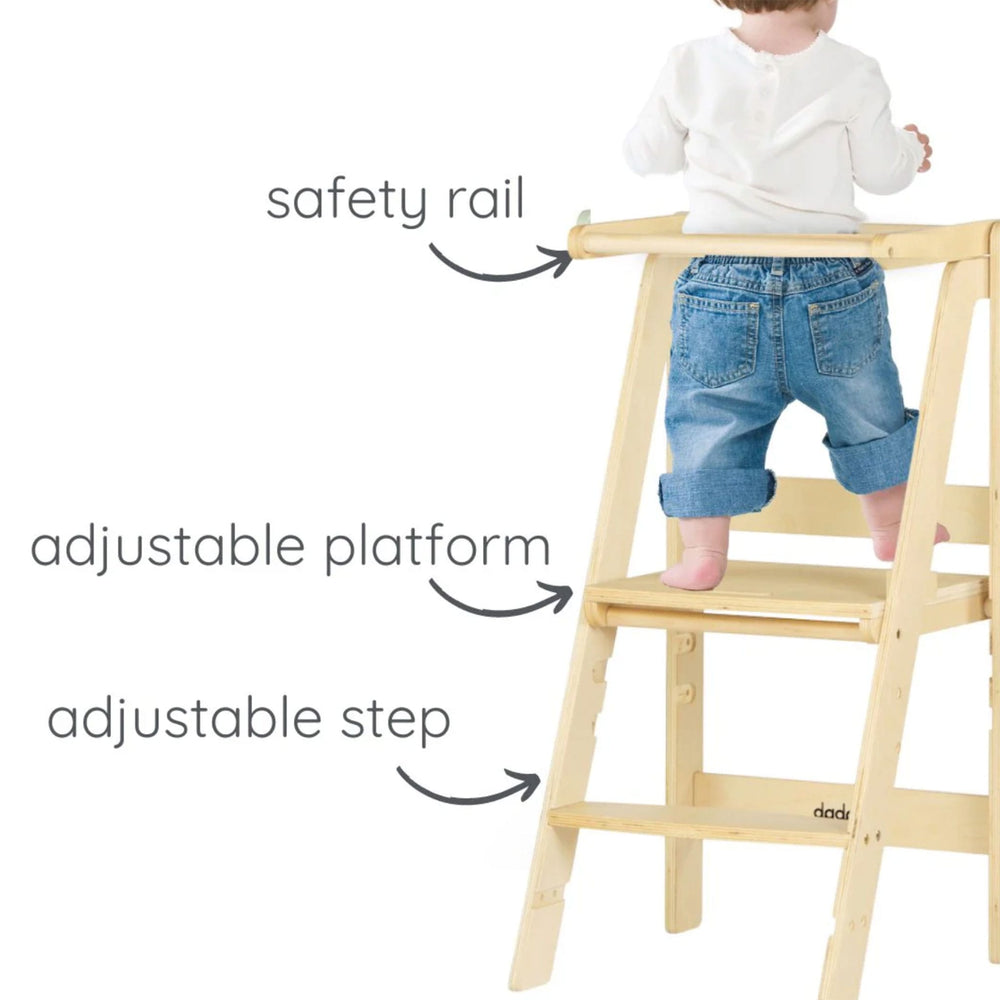 C'est le coup de pouce dont votre tout-petit a besoin pour passer à l'heure du bricolage, sur les comptoirs pour explorer de nouveaux goûts, ou sur l'évier pour pratiquer le lavage des mains et le brossage des dents de manière indépendante, désormais dans une nouvelle forme pliable facile à ranger. La tour pliante pour tout-petits est la solution parfaite pour vivre dans un petit espace avec un enfant d'âge préscolaire curieux, avec des marches faciles à régler, des finitions sans danger pour bébé et un cadre léger qui permet d'obtenir facilement un coup de pouce lorsque votre tout-petit en a besoin, et facile à ranger quand ils ont fini !