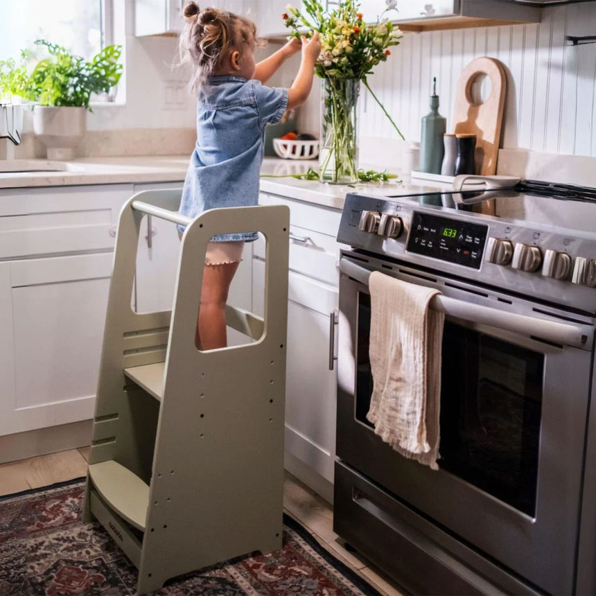 Avec des marches faciles à régler pour atteindre une variété de hauteurs, des finitions sans danger pour bébé et une collection de couleurs ludiques et adorables, la tour pour tout-petits est un incontournable pour la prochaine phase exploratoire de bébé.