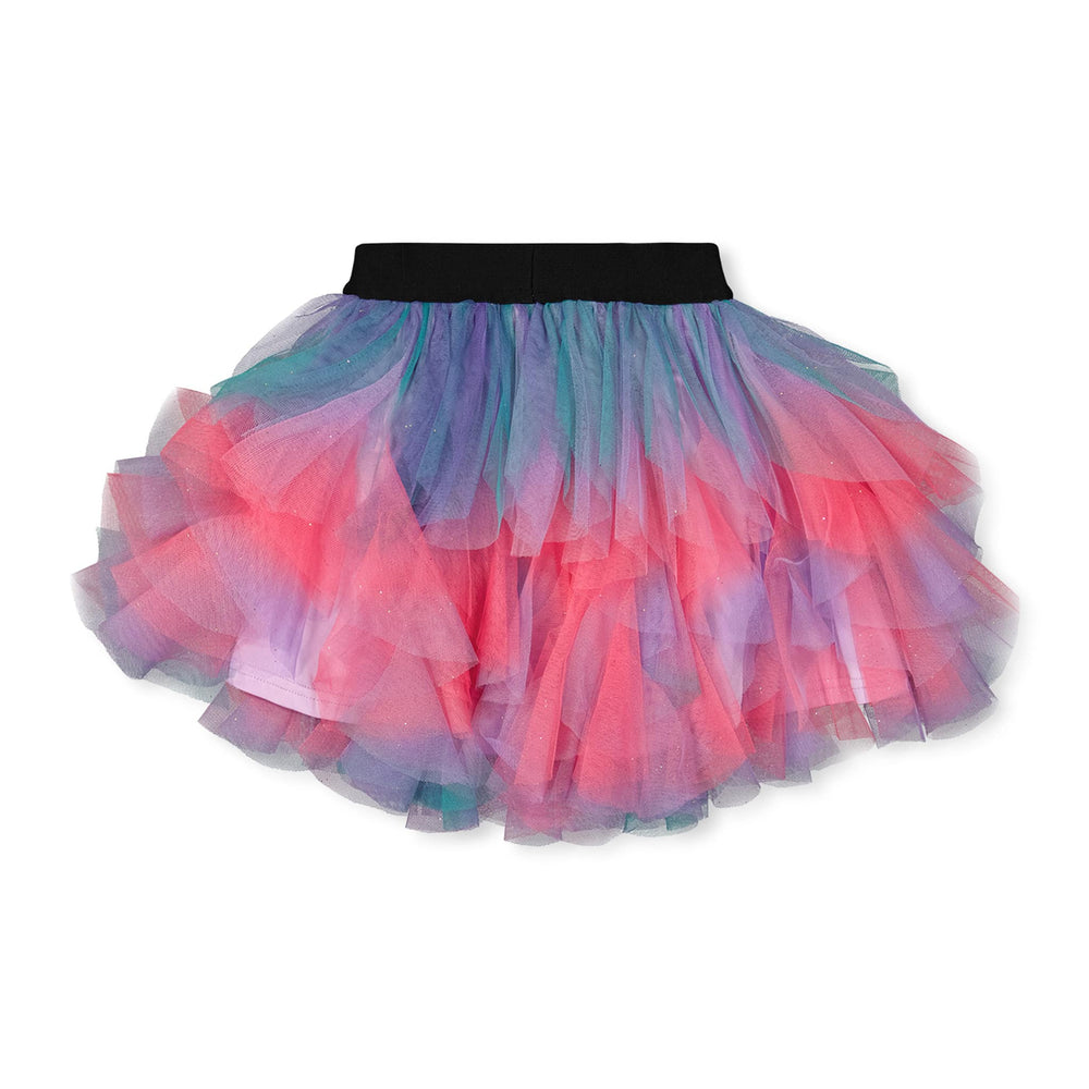 Notre jupe à volants multiples en tulle multicolore invite à la fête et à la fantaisie. Confectionnée en tulle léger parsemé de pois dorés brillants, cette jupe se distingue par ses trois volants légers superposés, sa doublure douce en dessous et sa ceinture extensible confortable. Idéale pour les grandes occasions ou pour illuminer le quotidien.