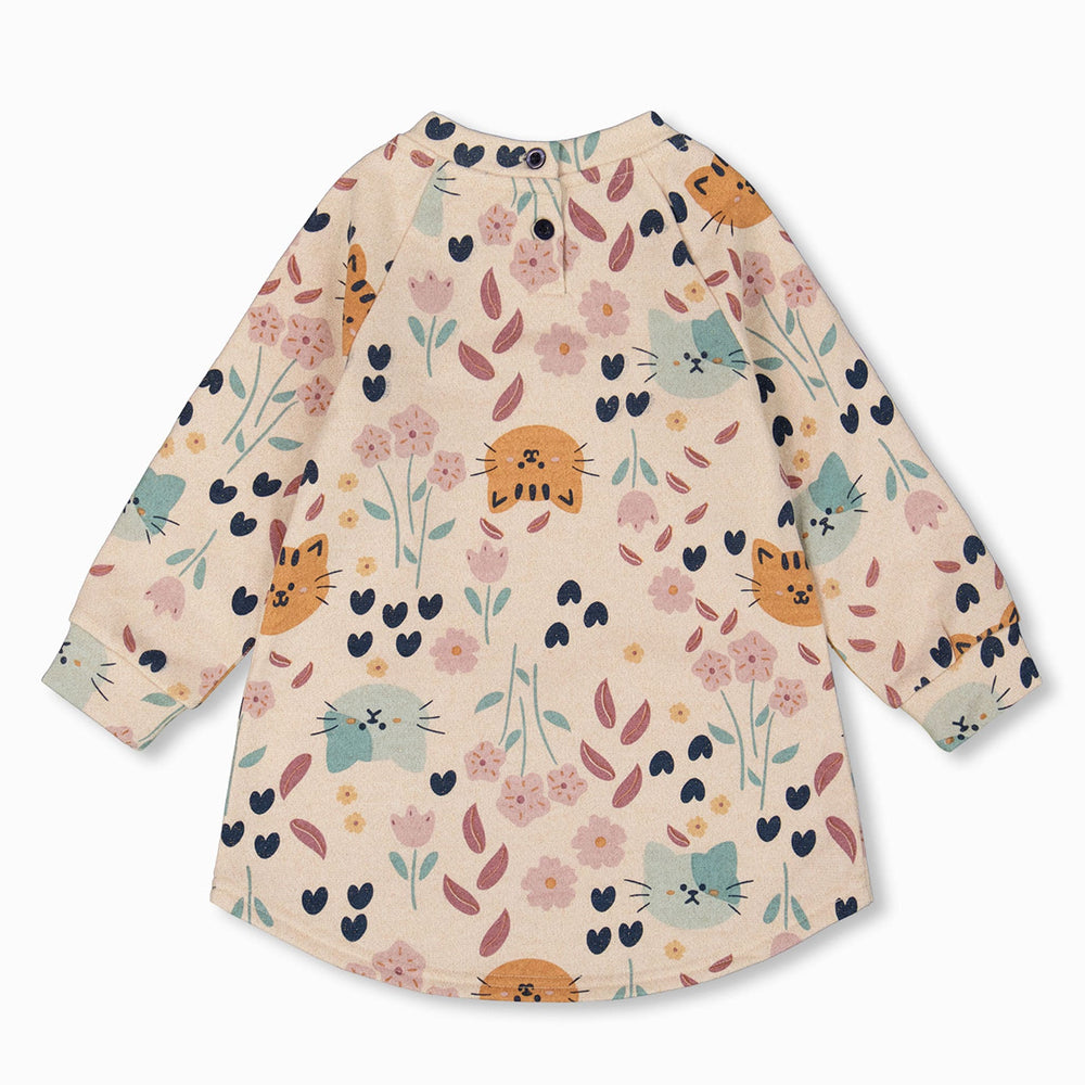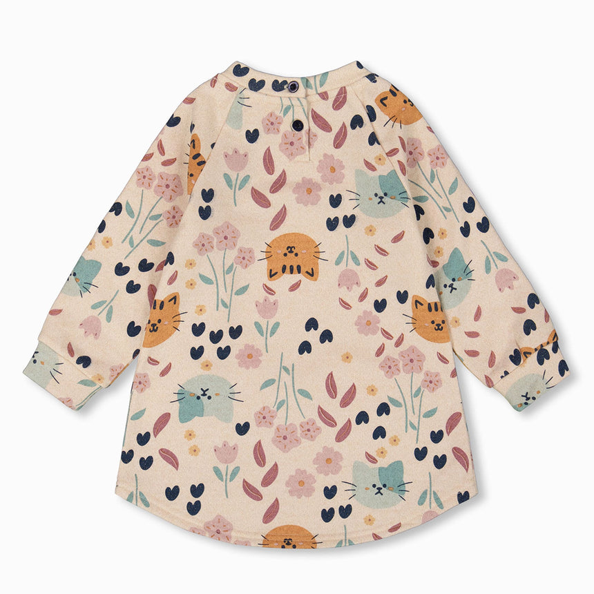La robe en molleton beige à imprimé de chats est une option confortable et ludique pour votre petite fille. Cette pièce charmante est fabriquée en molleton doux, offrant à la fois extensibilité et confort tout au long de la journée. L'imprimé intégral de chats et de fleurs adorable ajoute du charme, tandis que les deux poches en forme de chat à l’avant apportent encore plus de fun et de fonctionnalité. Avec ses manches longues, son col rond et sa coupe décontractée, cette robe est parfaite pour les journées fraîches et les aventures sans fin.