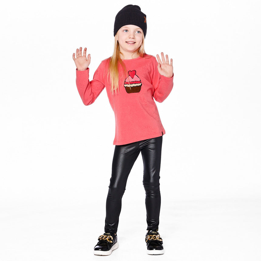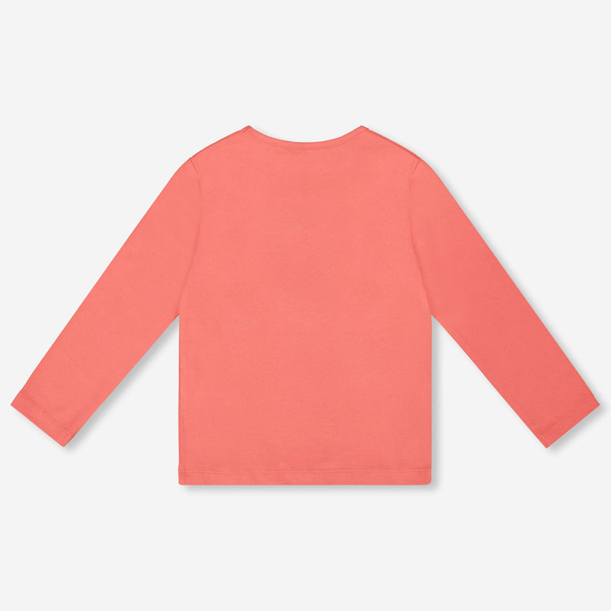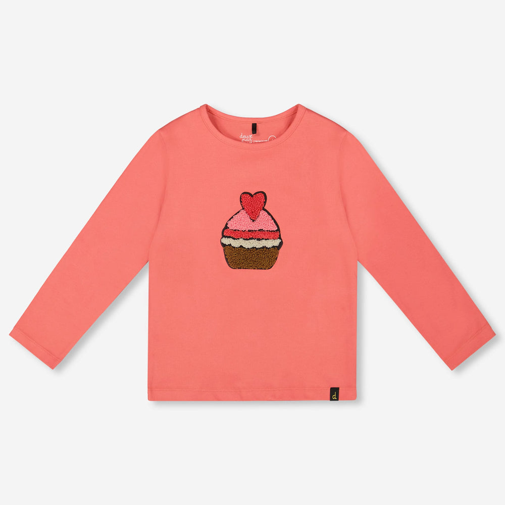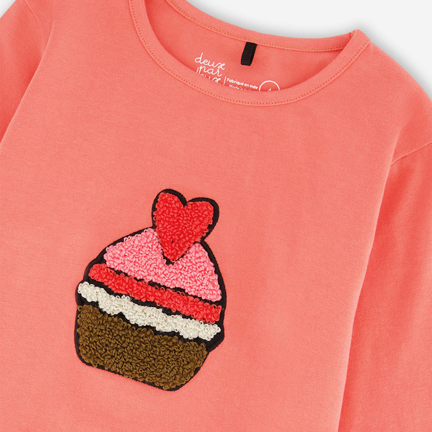 Ce t-shirt en coton biologique corail avec cupcake est le mélange parfait de confort et de mignonnerie pour sa garde-robe ! Confectionné en coton biologique, ce haut en jersey doux et respirant garantit un confort optimal tout au long de la journée avec la juste dose d’élasticité. Avec ses manches longues raglan, son col rond et un adorable imprimé graphique d’un cupcake sur la poitrine, il se marie parfaitement avec des jupes ou des leggings pour un look décontracté mais élégant. Les tailles 2 et 3 ans sont conçues sans ornements 3D détachables afin d’assurer la sécurité des jeunes enfants