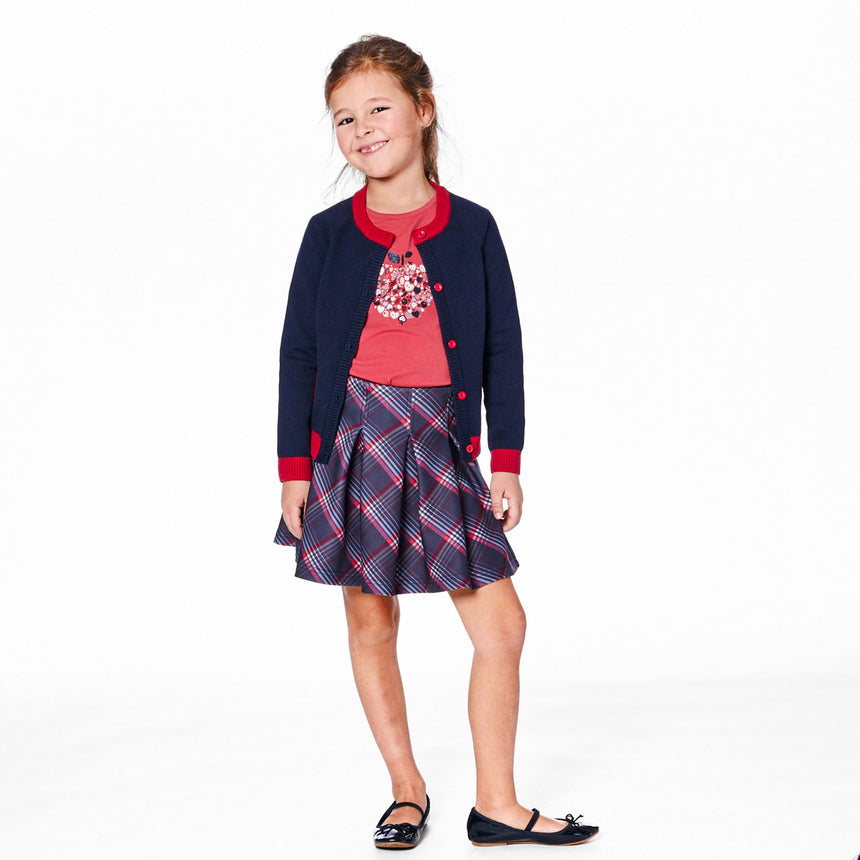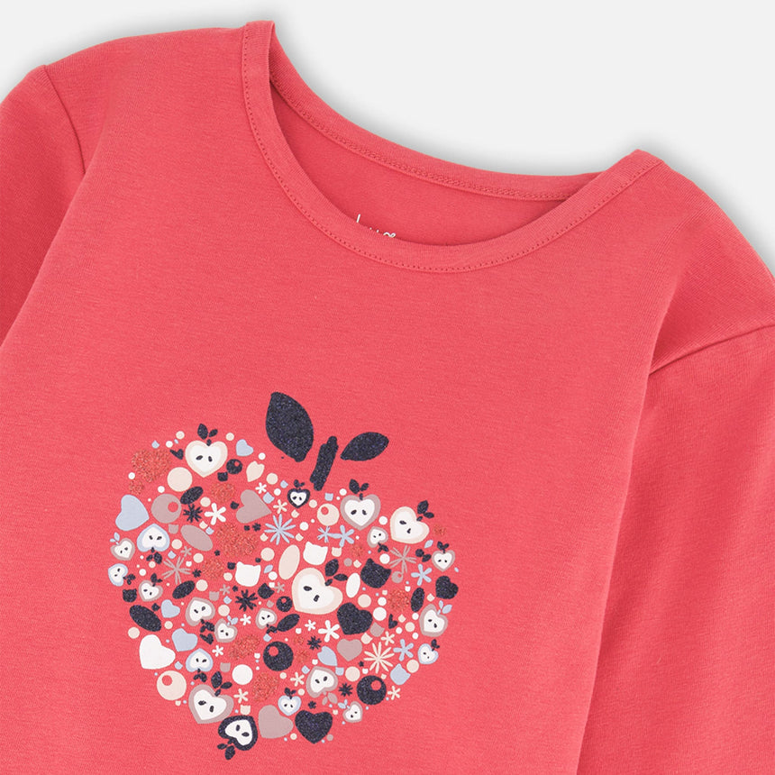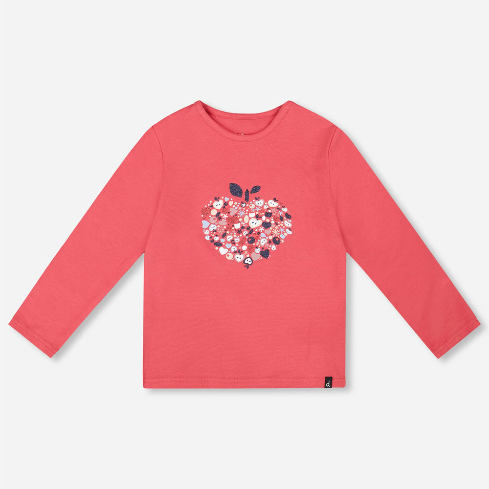 Gourmand et ludique, le t-shirt en coton biologique bleu marine avec pommes d'amour est une pièce pleine de fantaisie pour les jeunes filles. Ce haut à manches longues a des manches raglan, un col rond, et trois pommes caramélisées décorées de détails scintillants et texturés au niveau de la poitrine. Confectionné en jersey de coton biologique doux avec une touche d’élasthanne, il se superpose facilement à toutes ses tenues d’automne.