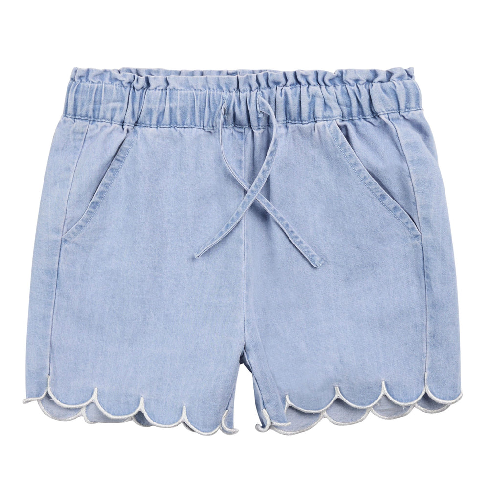Une version légère et aérée d’un indispensable. Ces shorts en denim sont confectionnés en chambray de coton issu de l’agriculture biologique, pour une touche douce et une coupe respirante. Dotés d’une taille froncée style paperbag, ils offrent un confort qui dure toute la journée, tandis que la bordure festonnée ajoute une petite touche spéciale à sa tenue. À assortir avec le haut à basque de la même collection pour un look double denim irrésistiblement chic.