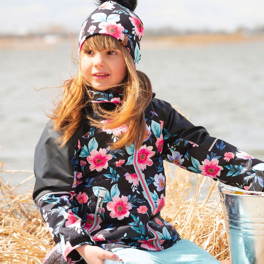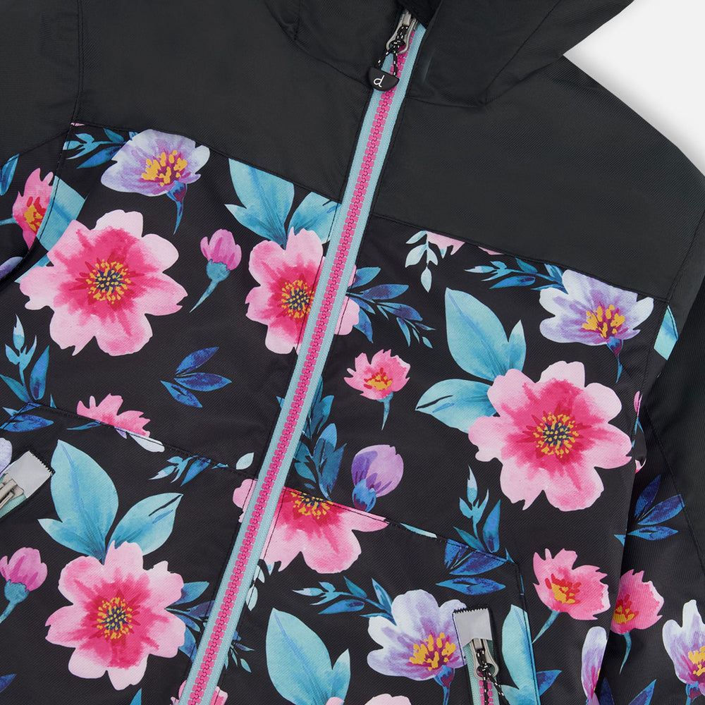 Pratique et élégant, cet ensemble d’extérieur mi-saison deux-pièces 3-en-1 noir à imprimé fleurs s’adapte parfaitement aux changements de température. L'ensemble comprend un manteau, une veste en polaire amovible noire et un pantalon assorti, fabriqués à partir de fibres recyclées et traités avec le protecteur écologique sans fluorocarbone BIONIC-FINISH® ECO. Avec son capuchon doublé en polaire, ses genoux renforcés et ses bandes réfléchissantes, cet ensemble allie style, confort et protection pour toutes les sorties de saison.