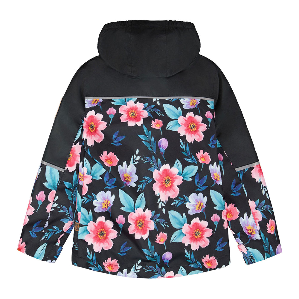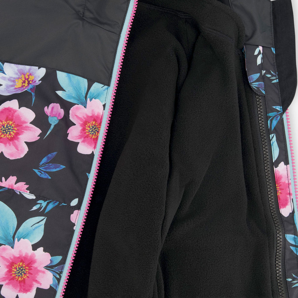 Pratique et élégant, cet ensemble d’extérieur mi-saison deux-pièces 3-en-1 noir à imprimé fleurs s’adapte parfaitement aux changements de température. L'ensemble comprend un manteau, une veste en polaire amovible noire et un pantalon assorti, fabriqués à partir de fibres recyclées et traités avec le protecteur écologique sans fluorocarbone BIONIC-FINISH® ECO. Avec son capuchon doublé en polaire, ses genoux renforcés et ses bandes réfléchissantes, cet ensemble allie style, confort et protection pour toutes les sorties de saison.