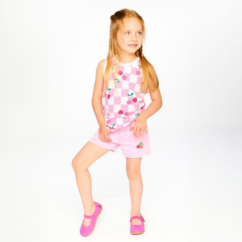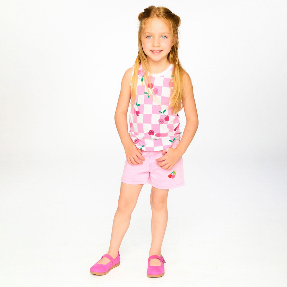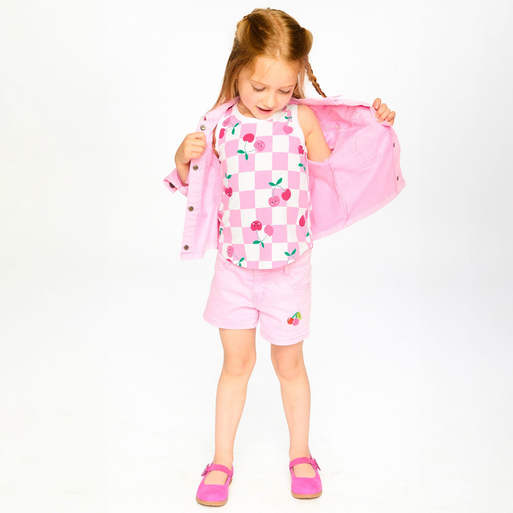 Ce short en denim rose avec broderie apporte une note tendre et espiègle à ses tenues estivales. Ce bas est embelli d’une jolie broderie cerise à l’avant, avec passants de ceinture, fermeture éclair avec bouton et poches classiques pour un look denim intemporel. Confectionné en coton doux avec une touche d’élasthanne, il assure confort et liberté de mouvement au quotidien dans la collection "Carrément cerise".