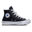 La sneaker montante, incontournable des terrains, a été repensée pour les enfants, avec une semelle intérieure avec amorti en mousse ainsi que des coutures et des doublures adoucies. L'empeigne en toile classique repose sur une semelle intermédiaire à plateforme en mousse EVA qui lui donne de la hauteur. Pour parfaire son style, ce modèle arbore des caractéristiques classiques de la Chuck Taylor All Star comme le patch Star au niveau de la cheville, les rayures contrastées sur la semelle intermédiaire et la semelle extérieure à motif losanges.