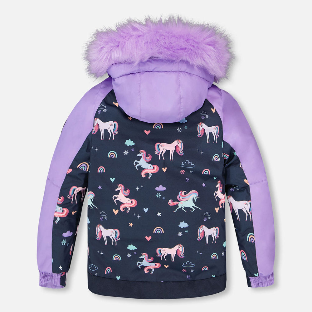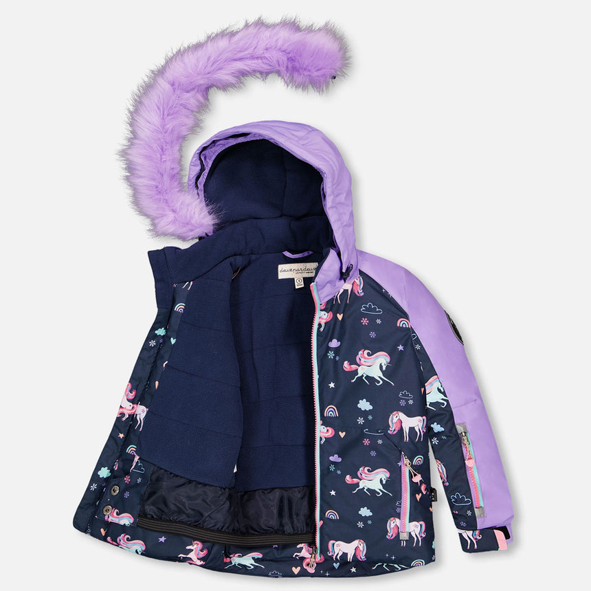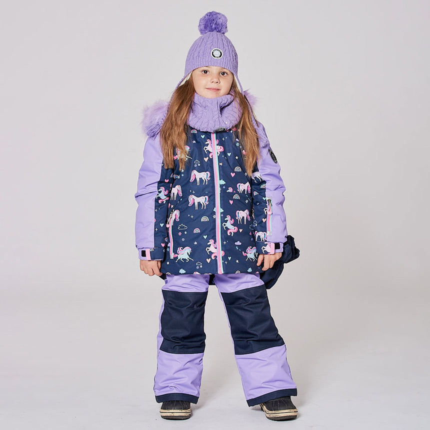 Imperméable, respirant et isolant pour une protection contre le froid jusqu’à -30°C (-22°F), notre habit de neige deux pièces PLAY marine à imprimé de licornes est conçu pour offrir un maximum de confort, de chaleur et de performance dans la neige. Ce manteau d’hiver doublé en polaire est muni d’un capuchon amovible et ajustable, de manches articulées pour une meilleure amplitude de mouvement, de poignets élastiques, d’une jupe pare-neige, de manches extensibles pour accompagner la croissance de l’enfant, ainsi que d’une plaquette coupe-froid et d’une mentonnière protectrice. Le pantalon est doté d’empiècements renforcés en Cordura® pour une durabilité accrue, de genoux articulés, de bretelles ajustables et amovibles, de pare-neige aux chevilles, et de poches zippées pour ranger un pass de ski ou d’autres essentiels.