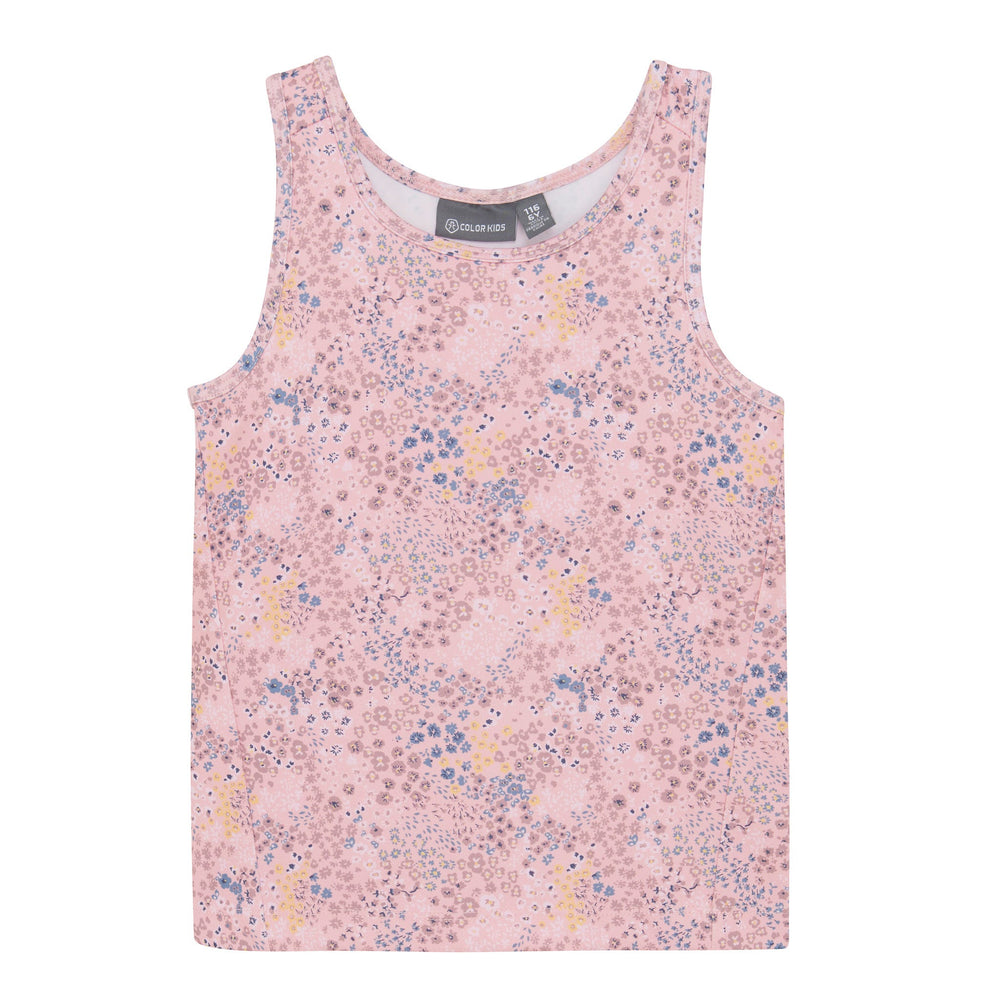 Haut de sport sans manches de Color Kids. Le haut est adapté au sport grâce à sa matière extensible, respirante et à séchage rapide. Le haut a un joli imprimé intégral. Tissu : 78 % polyester / 22 % élasthanne