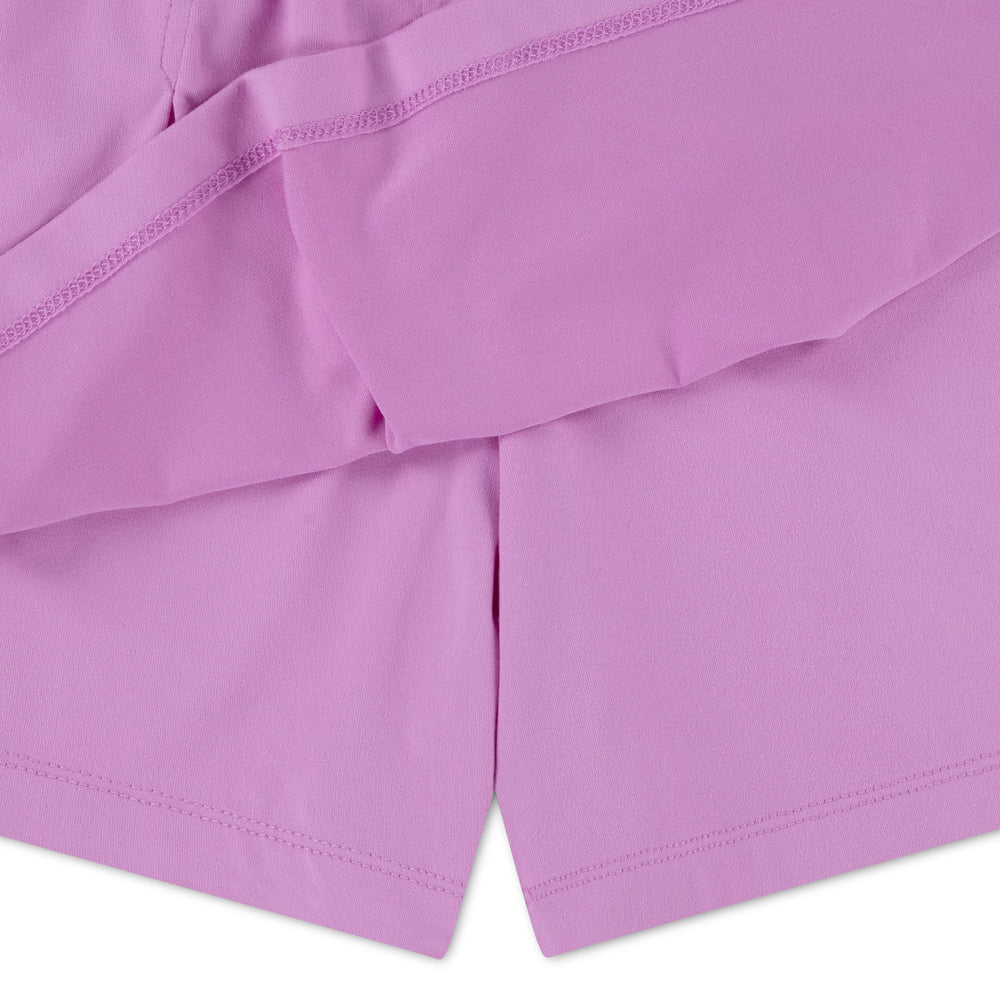 Le t-shirt est doté d’une encolure ras-du-cou sans étiquette pour un confort sans irritation, et la jupe-short assortie présente un panneau plissé à l’avant ainsi qu’une taille élastique pour un ajustement confortable qui dure toute la journée, tout au long du jeu.