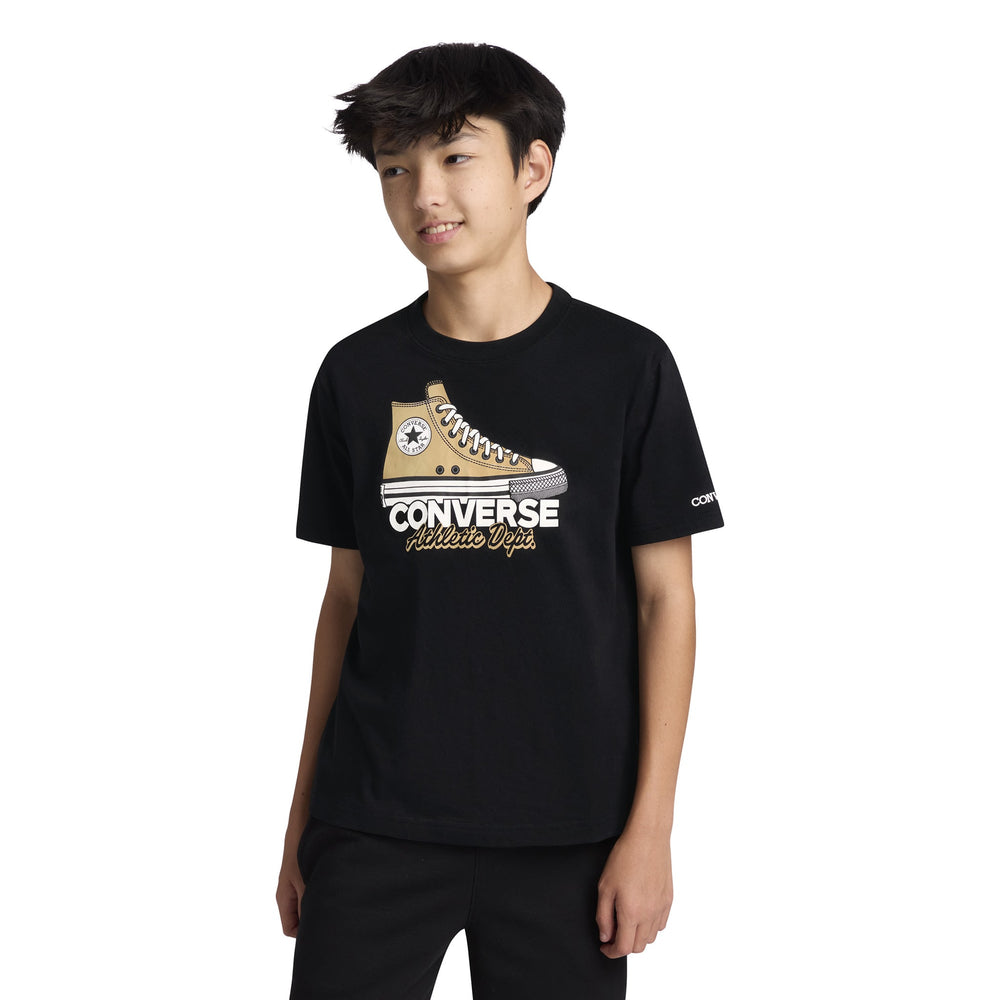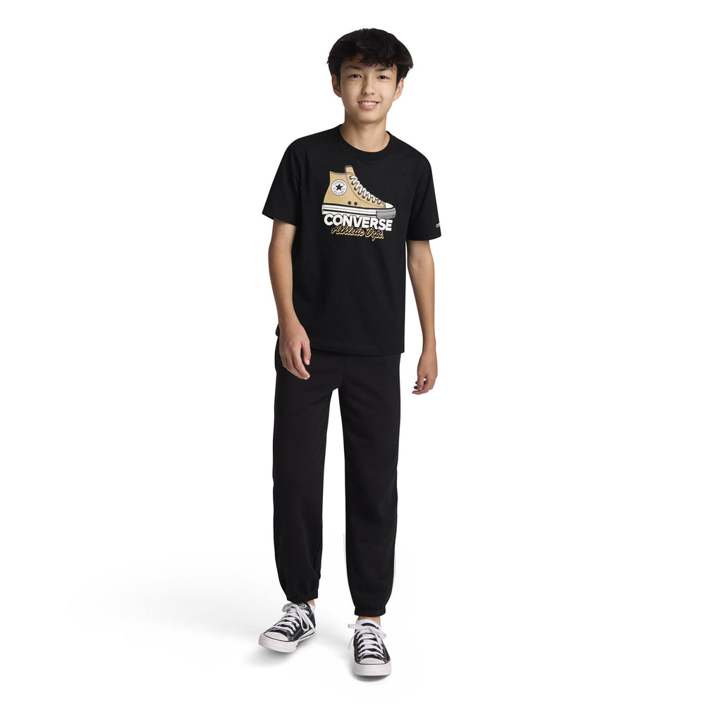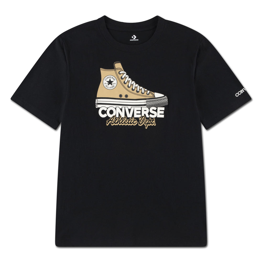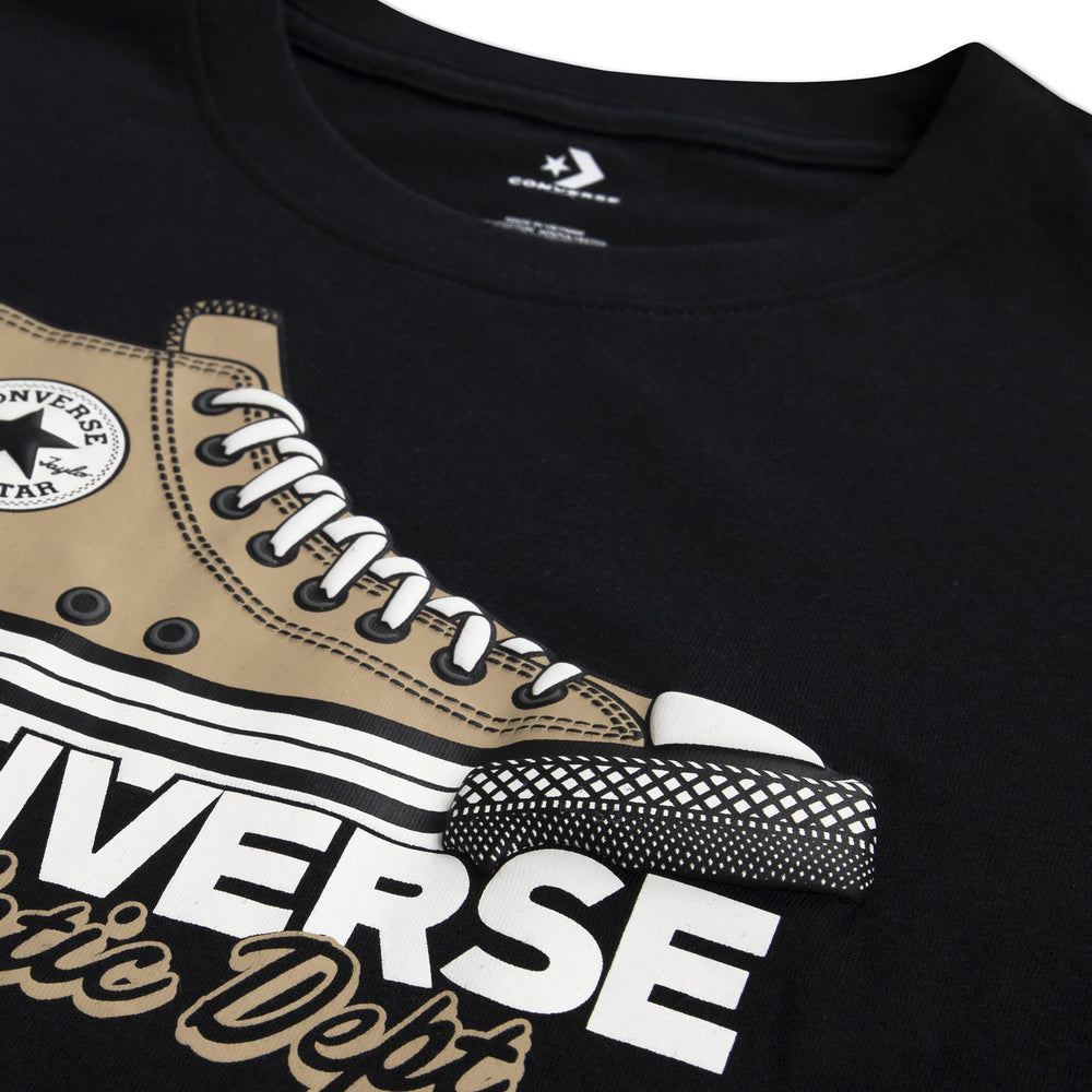 Affichez votre paire préférée avec ce t-shirt coupe standard de Converse, un indispensable de la garde-robe, suffisamment confortable pour un usage quotidien. Confectionné en jersey doux, il adopte une silhouette classique à manches courtes et présente un motif sneaker. Son col ras du cou sans étiquette offre un confort sans irritation, et il se marie facilement avec une grande variété de bas.