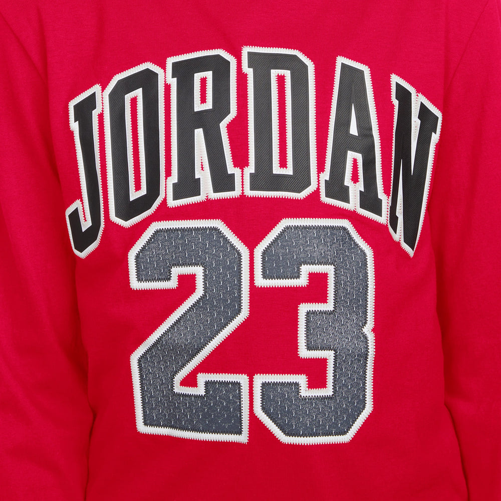 Que votre enfant aille à l’entraînement, en classe ou retrouver des amis, ce t-shirt inspiré d’un maillot de sport signé Jordan fera parfaitement l’affaire. Confectionné en jersey doux coton/polyester, il est doté d’un col ras-du-cou sans étiquette pour un confort optimal, et les manches longues avec poignets côtelés ajoutent une chaleur légère et agréable.