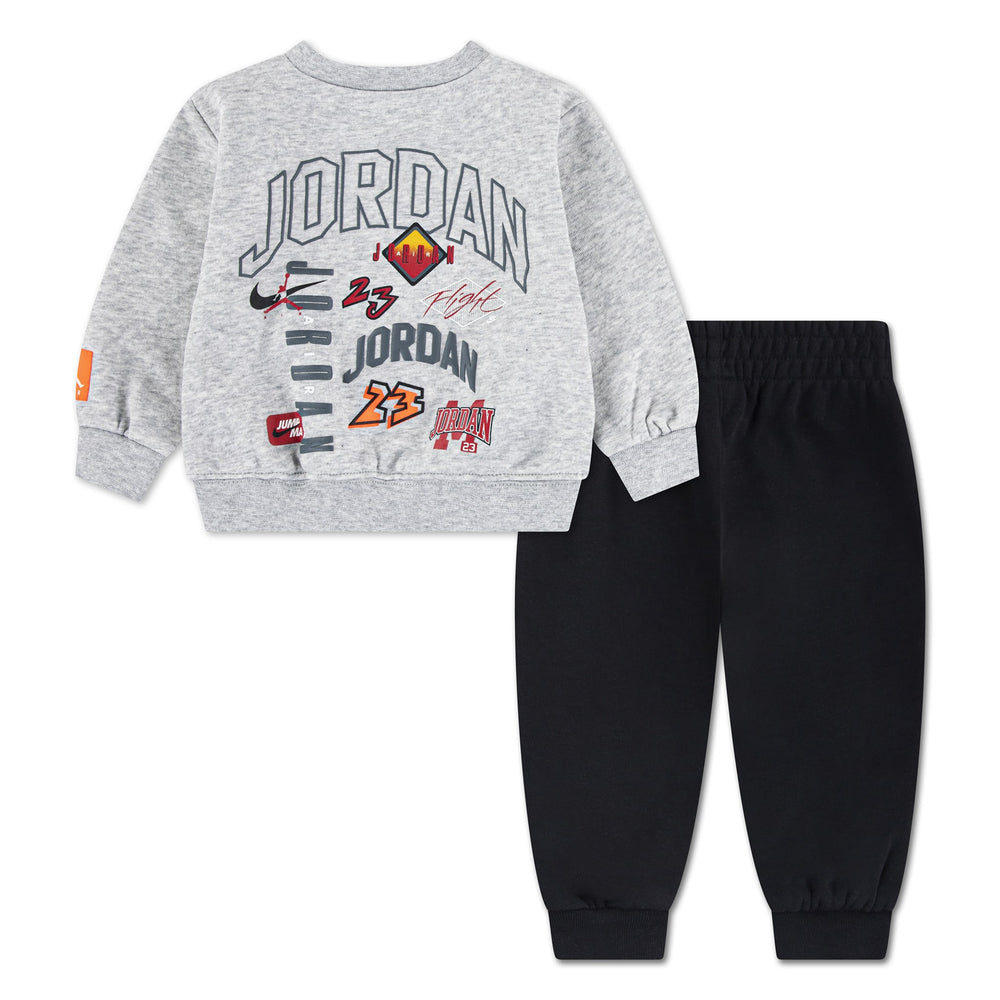 Habillez votre petit pour créer sa propre dynastie sportive avec cet ensemble 2 pièces de Jordan, confectionné en molleton français doux qui offre chaleur et confort. Le chandail à col rond présente des boutons-pression sur l’épaule pour un habillage facile, et le pantalon fuselé possède une taille élastique pour un ajustement confortable.