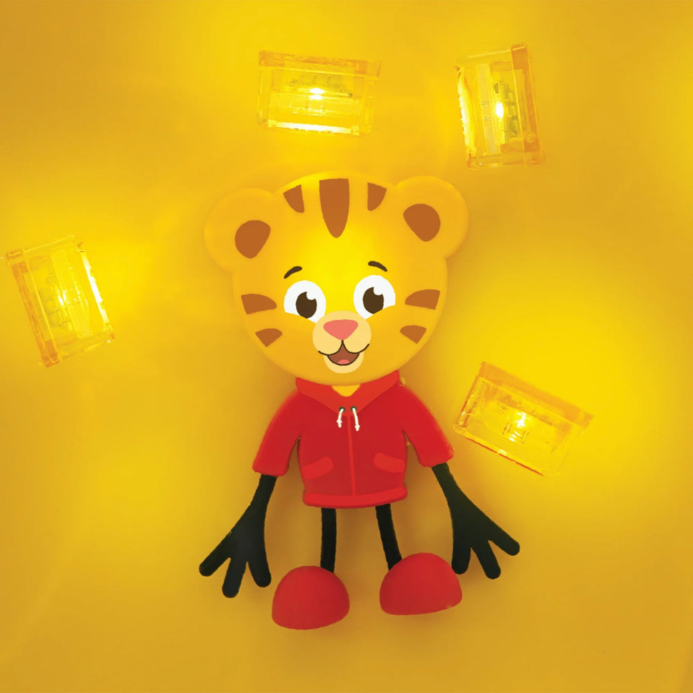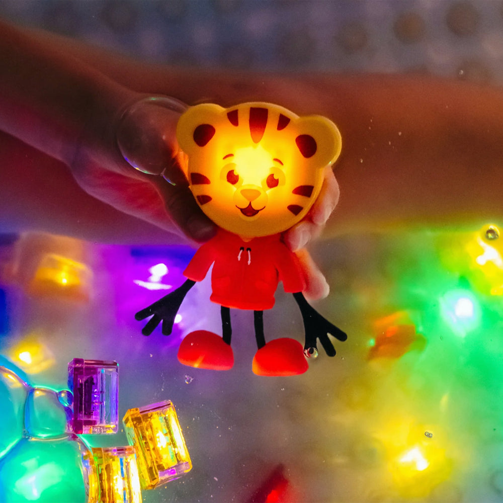 Enfile ton costume de tigre et prépare-toi à rugir de plaisir avec ton ami Daniel le Tigre préféré ! Insère le cube lumineux Daniel le Tigre à l'arrière de ton ami, plonge-le dans l'eau et regarde-le s'illuminer ! Notre figurine Daniel le Tigre est livrée avec 2 cubes lumineux.